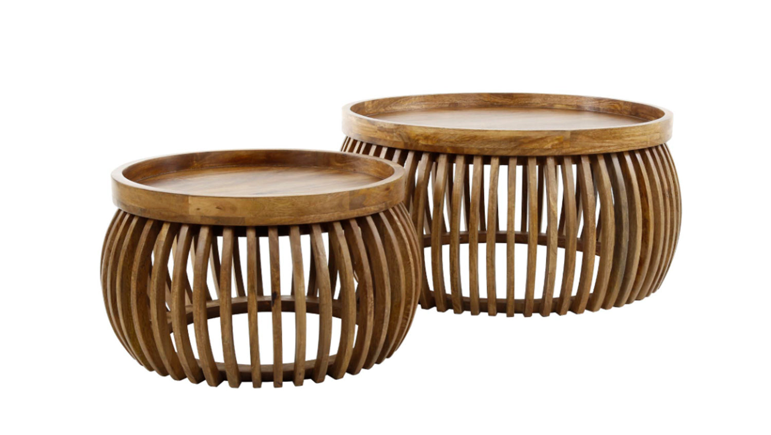 El juego de mesa de centro LANI de KAWOLA aúna naturaleza y diseño moderno en perfecto equilibrio. Está fabricado en madera de mango con una superficie de color arena. La base curvada confiere a las mesas un aspecto extraordinario y crea un punto de atracción visual en su salón. Este conjunto es realmente imprescindible. Consta de dos mesas que pueden combinarse de forma flexible. La mesa más grande tiene un diámetro de 80 cm y una altura de 40 cm, mientras que la más pequeña tiene un diámetro de 60 cm y una altura de 35 cm. Ya sea en el salón, en la sala de estar o como un elegante mueble de almacenamiento, el conjunto de mesas de centro LANI encaja en cualquier hogar y es toda una declaración de diseño.