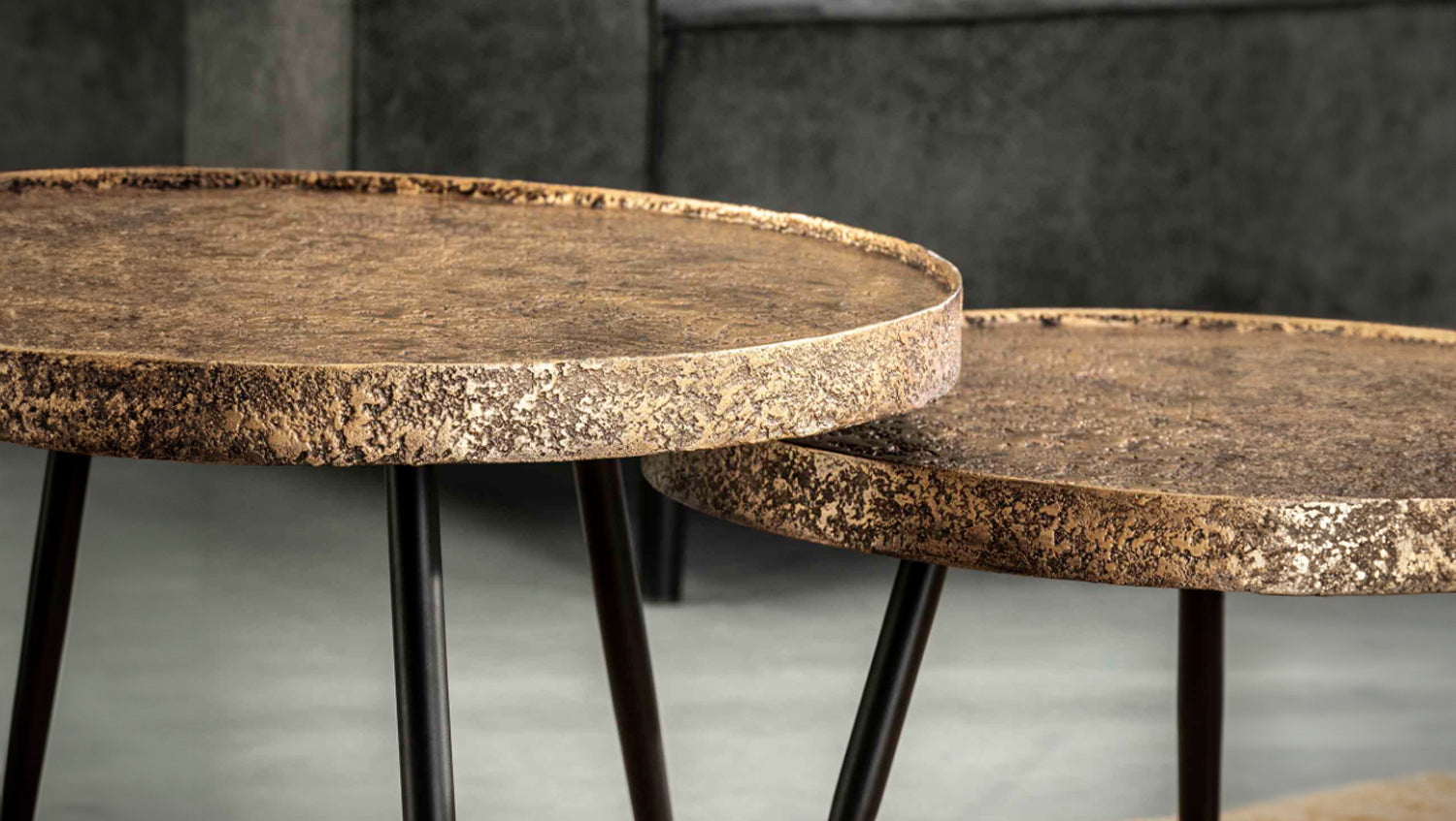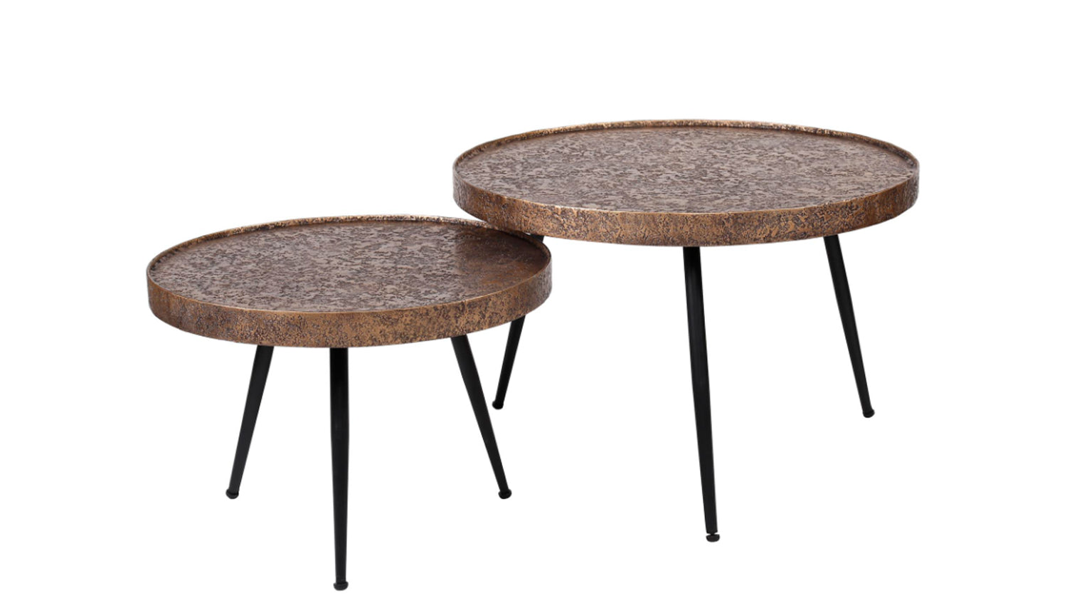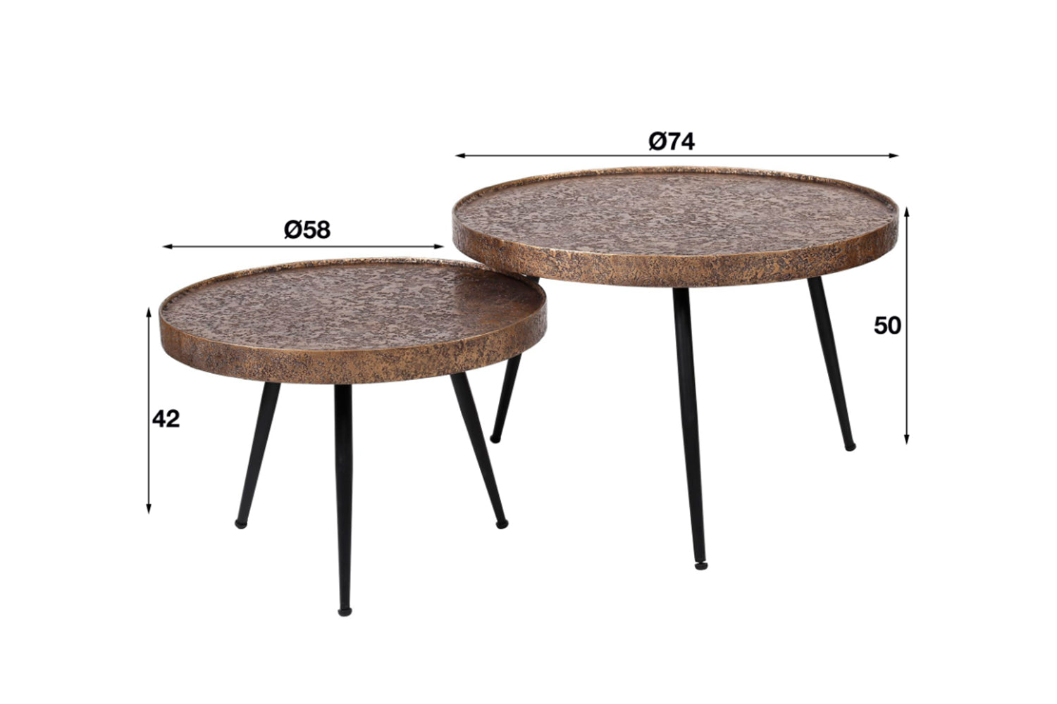 El juego de mesa de centro ARINOS de KAWOLA está fabricado en metal de color bronce. La parte superior tiene un bonito acabado que le da un aspecto único. Este conjunto tradicional atrae todas las miradas y es muy fácil de combinar con muchos estilos diferentes. El conjunto consta de dos mesas. La mesa más grande tiene un diámetro de 74 cm y una altura de 50 cm, mientras que la mesa más pequeña tiene un diámetro de 58 cm y una altura de 42 cm. Ya sea moderno, rústico o clásico, el juego de mesa de centro ARINOS se adapta sin esfuerzo a cualquier estilo de decoración gracias a su aspecto atemporal. Ideal como centro de mesa con estilo en el salón y una auténtica atracción para los amantes de los muebles de alta calidad.
