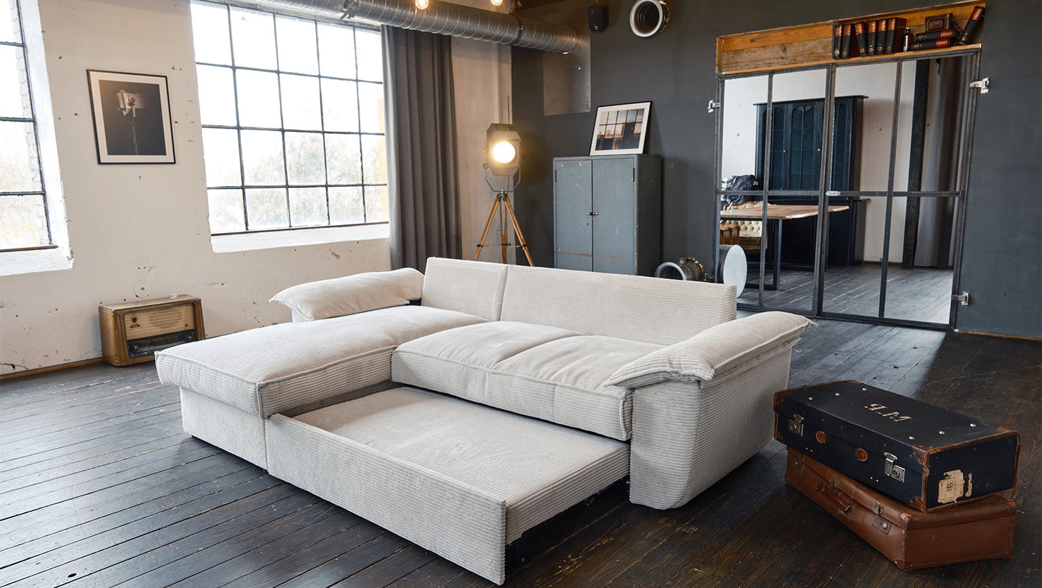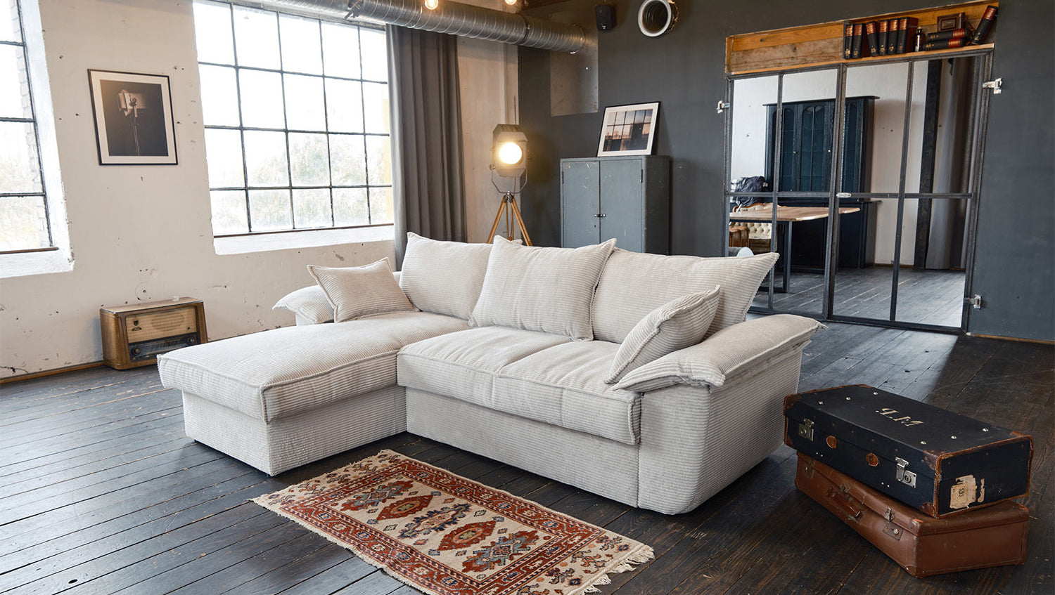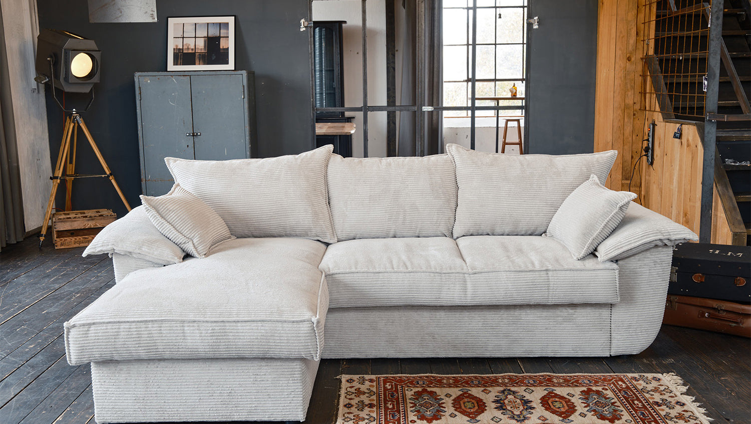El sofá KAWOLA DAMETO es el nuevo todoterreno de nuestra gama. Con su moderno revestimiento de tela de pana, no sólo atrae todas las miradas, sino que su acolchado agradablemente suave también garantiza la máxima comodidad de asiento. Pero, sobre todo, convence por sus múltiples funciones adicionales. El sofá esquinero puede transformarse en un cómodo sofá cama en unos pocos pasos: basta con tirar de la parte inferior del sofá de 2 plazas hacia delante, plegarla hacia arriba y ¡listo! Pero eso no es todo: el sillón largo dispone de un generoso espacio de almacenamiento que puede abrirse sin esfuerzo abatiendo el asiento. El sillón largo también puede colocarse a ambos lados, lo que le ofrece la máxima flexibilidad para el diseño de su salón. Tanto a la izquierda como a la derecha, podrá adaptar fácilmente el sofá a su espacio. Cómodo, elegante, versátil y práctico, el sofá DAMETO se convertirá en la nueva estrella de su salón.