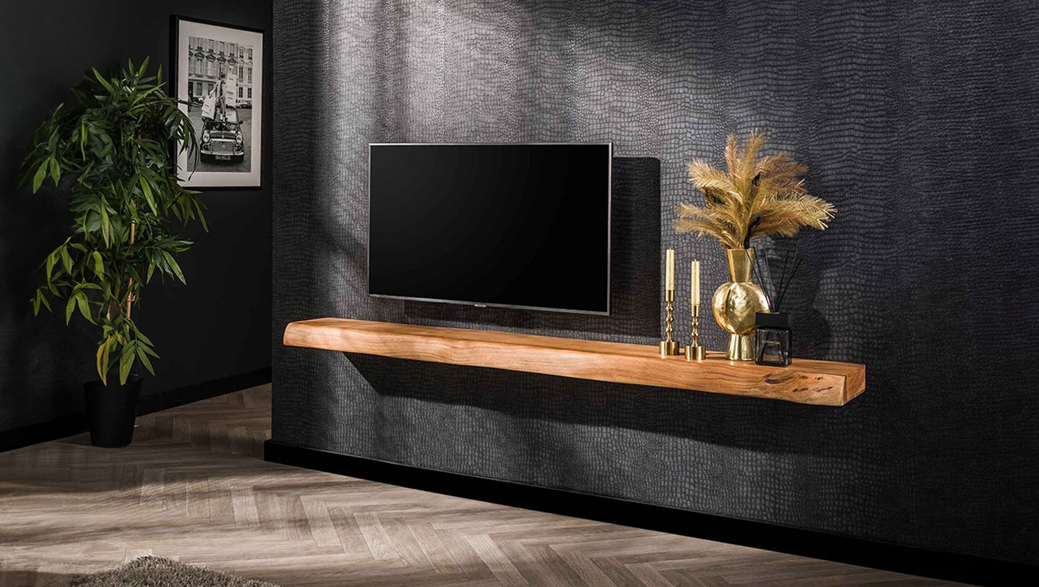 La estantería de pared KAWOLA SESA de 200 cm está hecha de madera maciza de acacia y tiene un acabado en laca transparente mate, que resalta la belleza natural de la madera. El tablón tiene 8 cm de grosor y un borde de árbol auténtico, que crea un aspecto de tronco de árbol natural y añade un toque cálido y orgánico a cualquier habitación. La estantería se fija a la pared con tres tacos de madera para una sujeción firme y estable. Con su generosa longitud de 200 cm, esta estantería de pared ofrece un espacio de almacenamiento versátil o una impresionante zona de exposición.