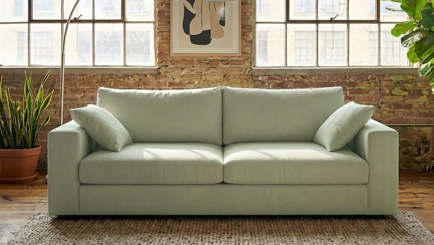 KAWOLA Sofá AMINA 3 plazas tela verde