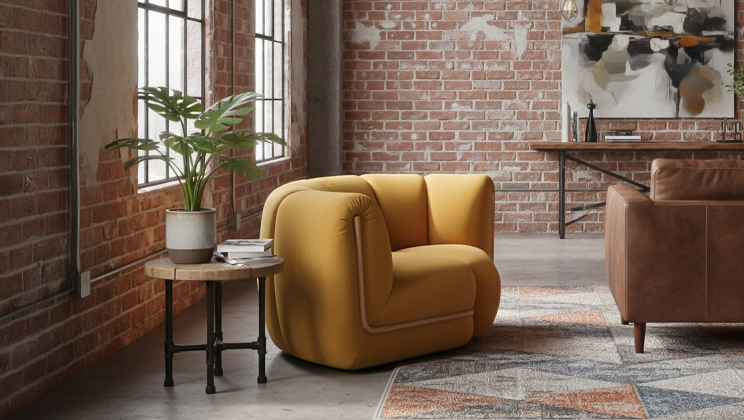 Sillón KAWOLA LAYLA Elemento angular Velvet amarillo