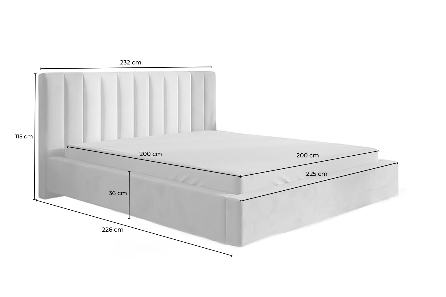 La funda de terciopelo de alta calidad subraya el carácter lujoso de la cama. La superficie aterciopelada y suave es agradable al tacto y, según la incidencia de la luz, presenta un delicado y elegante irisado. Al mismo tiempo, el material es resistente y muy adecuado para el uso diario. Las líneas claras, en combinación con el suave acolchado, crean un equilibrio perfecto entre el diseño moderno y el confort hogareño.