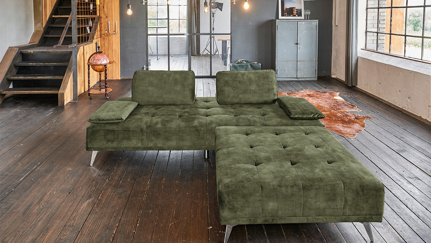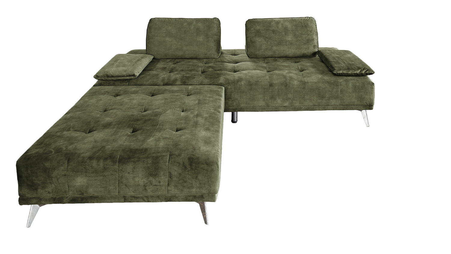 El sofá WIOLO de KAWOLA combina un diseño elegante con un alto nivel de confort. El elegante acolchado del asiento, la agradable funda de terciopelo en verde musgo y los pies de metal con filigranas hacen de este sofá un auténtico reclamo. Pero el moderno sofá cama no es sólo atractivo a la vista. Ofrece varias opciones de uso. Utilícelo como un elegante sofá para su salón. Lo más destacado: los Cojines respaldo se pueden distribuir y mover individualmente como se desee. Esto le permite adoptar la posición sentada o reclinada más cómoda para usted. Puede transformar el sofá en un cómodo sofá cama para sus invitados en un abrir y cerrar de ojos retirando los Cojines respaldo. La cómoda superficie reclinable ofrece mucho espacio para relajarse. El Puf a juego completa el conjunto y aporta aún más flexibilidad al salón. Ya sea como sofá para sentarse o como sofá cama para reclinarse, WIOLO añade elegancia y comodidad a cualquier habitación. Disfrute de horas de relax en su nuevo sofá Velvet. WIOLO es el mueble perfecto para cualquiera que valore el diseño y la funcionalidad. Experimente la diferencia con este cómodo sofá cama.