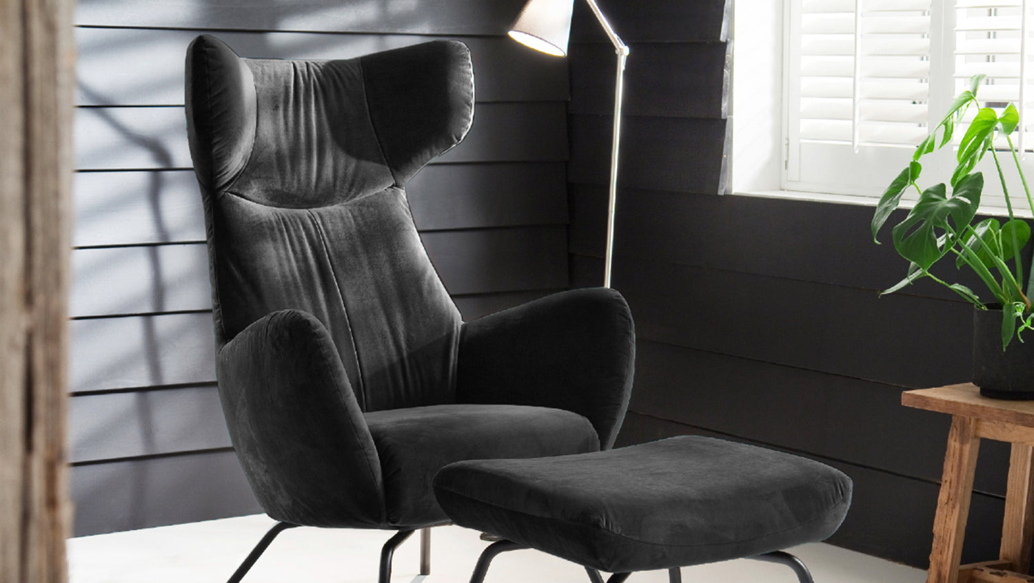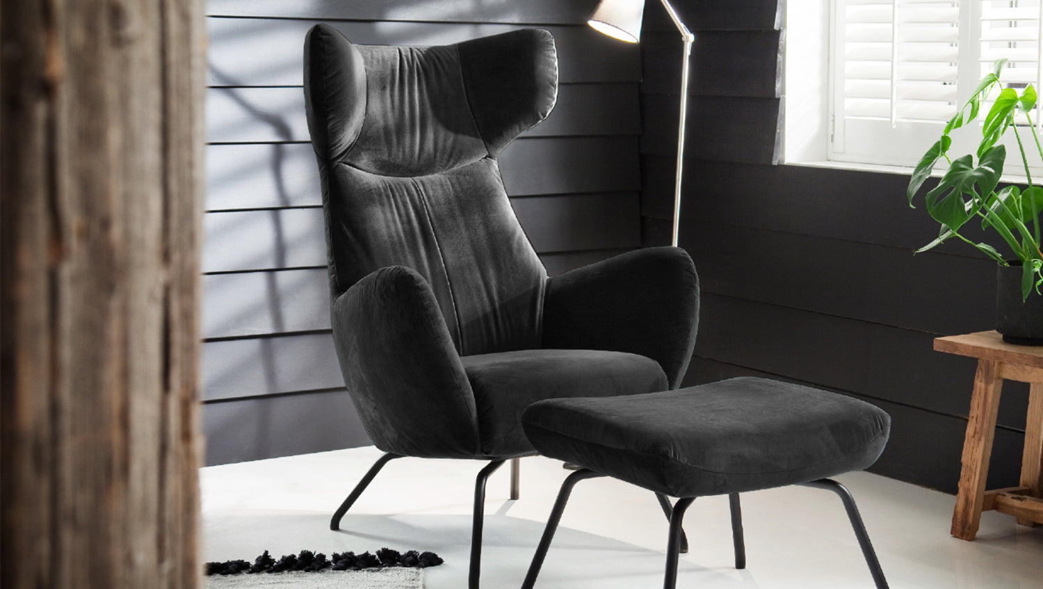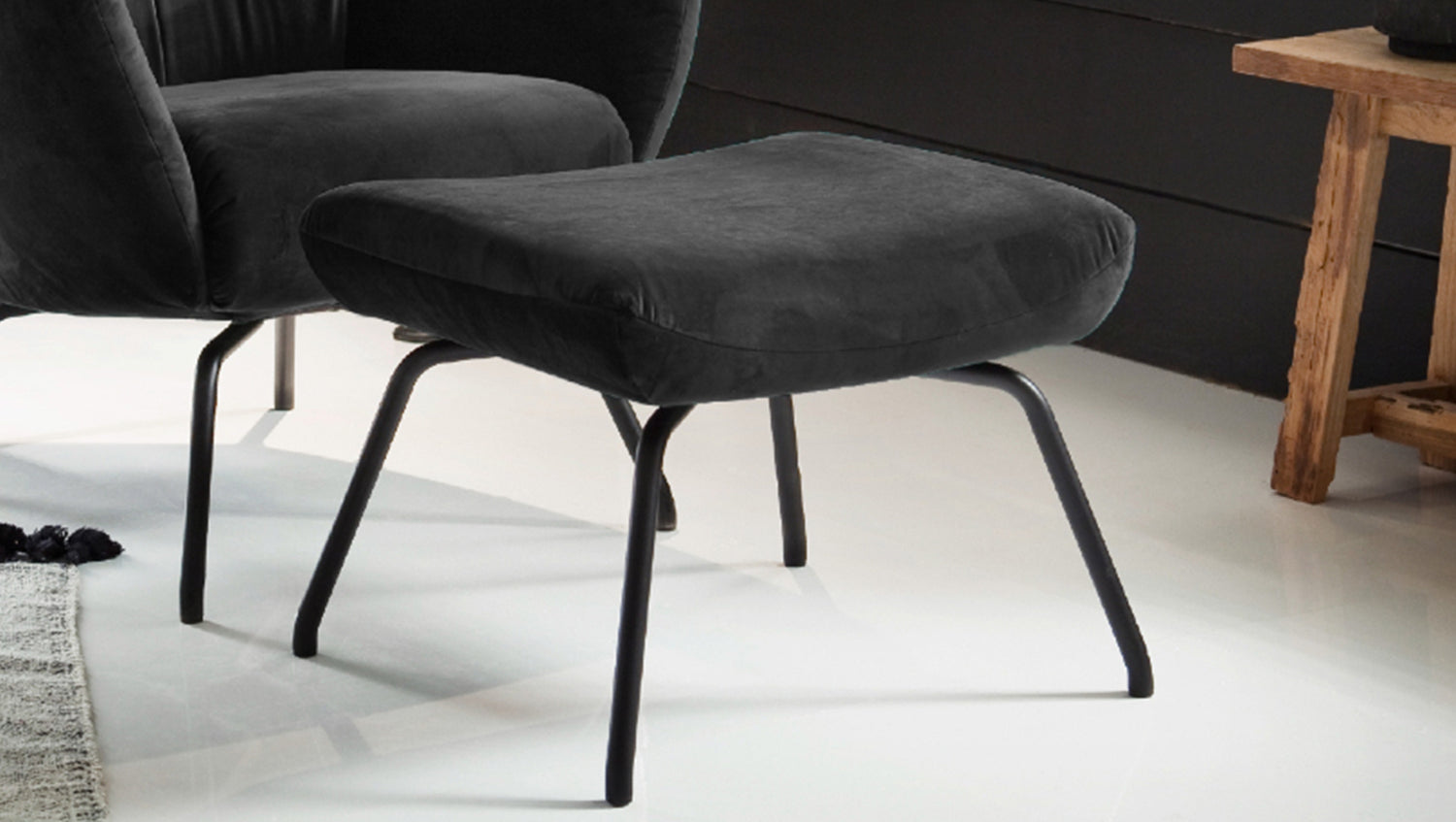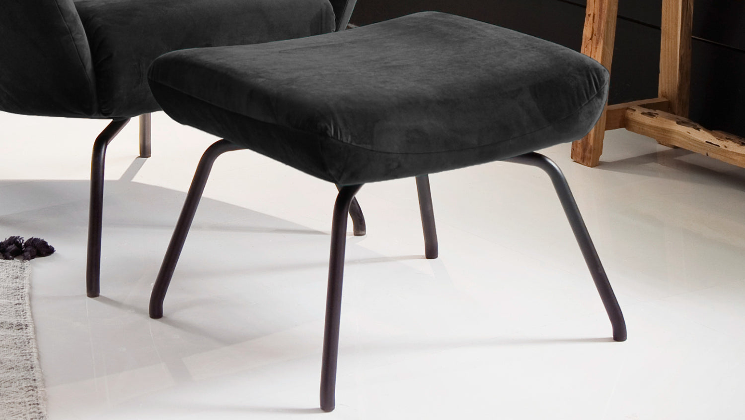 KAWOLA sillón LOTTE sillón LOTTE terciopelo negro con Puf