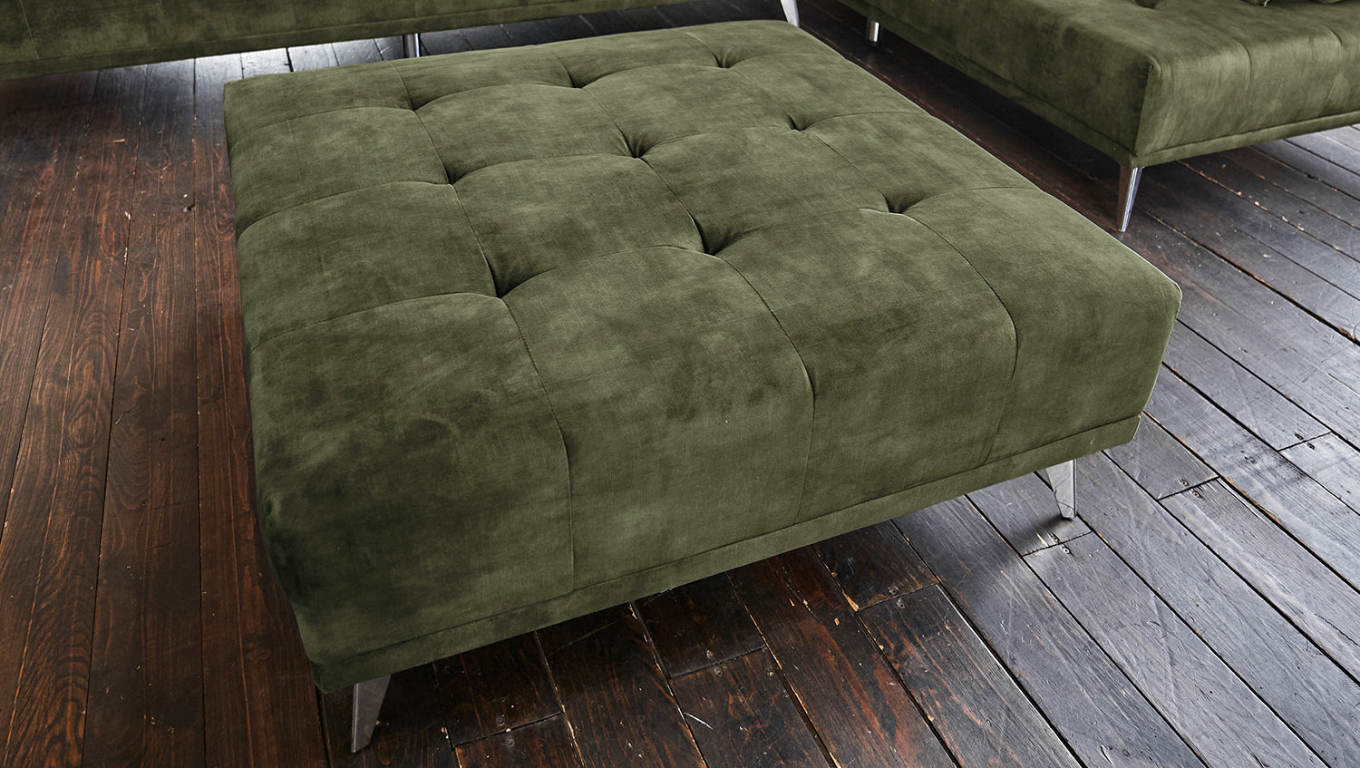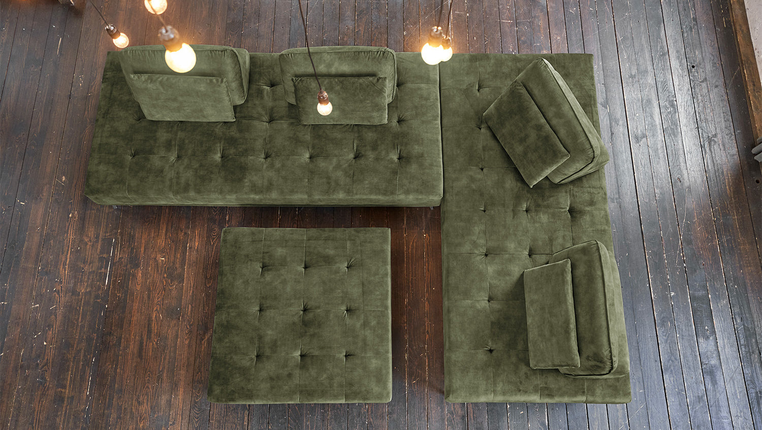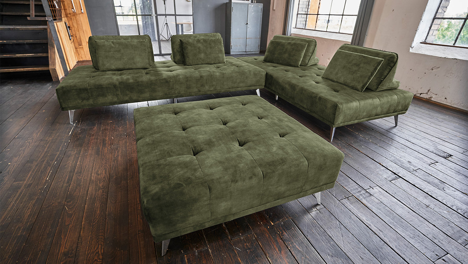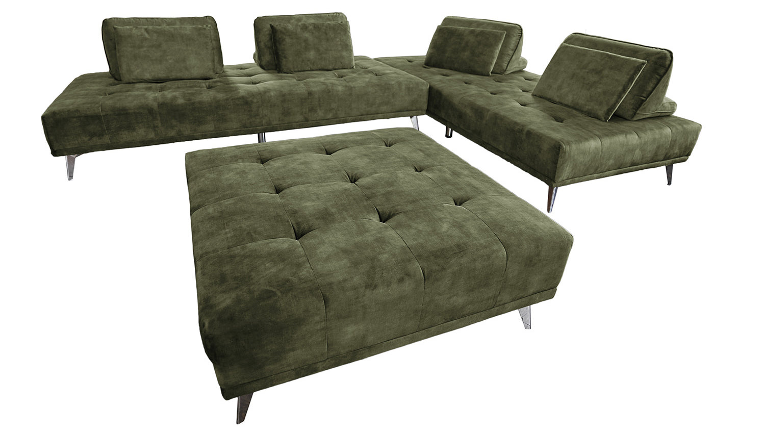 KAWOLA Sofá WIOLO sofá esquinero terciopelo con Puf verde musgo