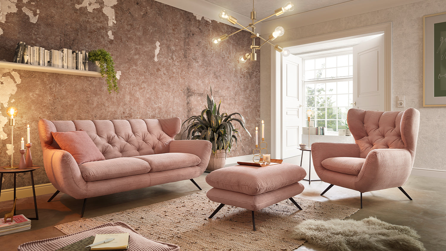KAWOLA grupo de asientos CHARME sofá sillón Banco Pana rosa