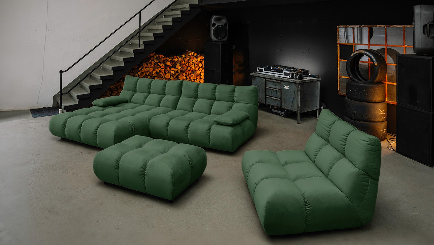 • FUNCIONES PRÁCTICAS - sofá para relajarse, Puf como complemento flexible, silla giratoria con función 360