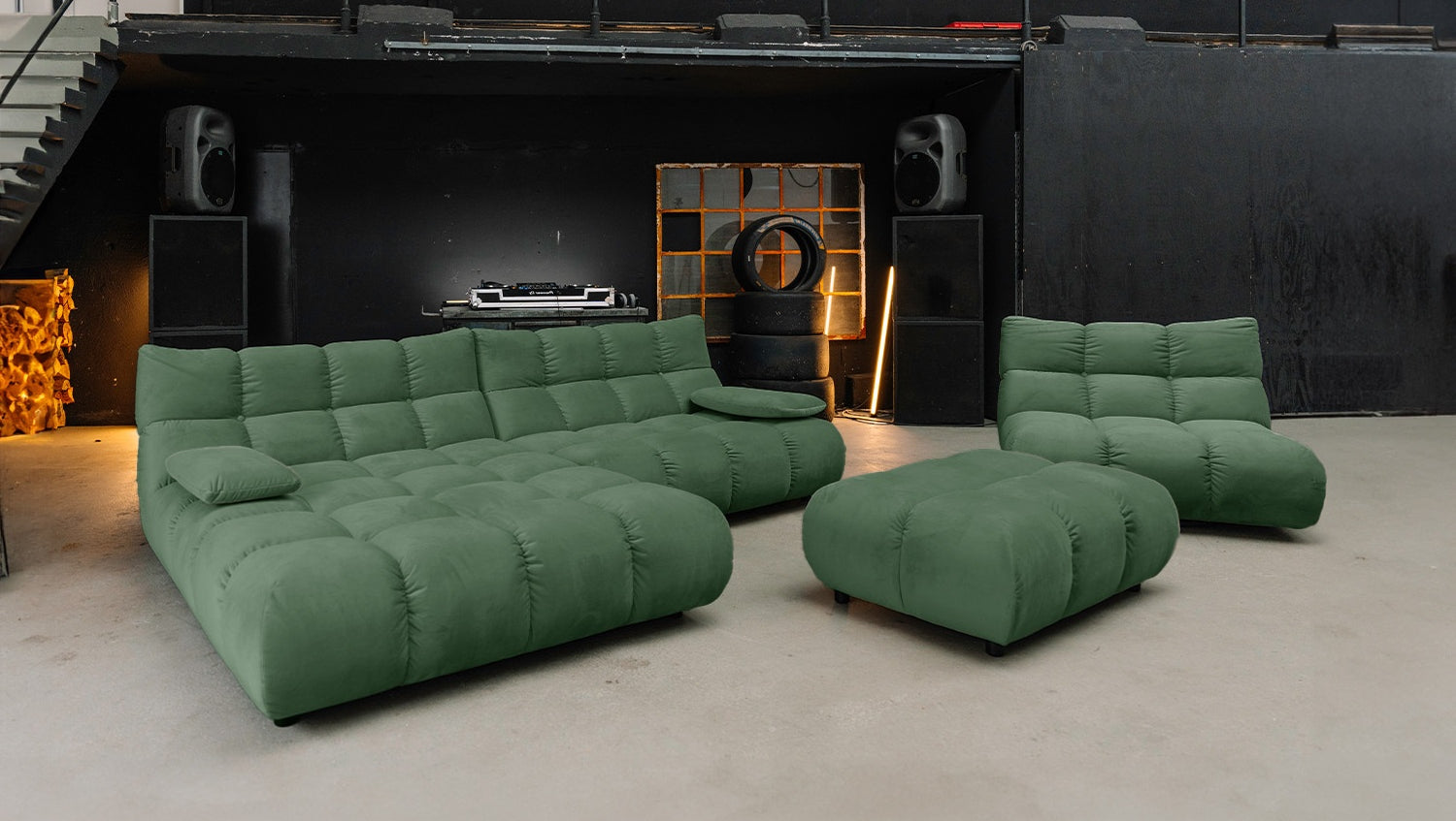 • ELEGANTE SITZGRUPPE - sofá esquinero, banco taburete y sillón giratorio de diseño lujoso