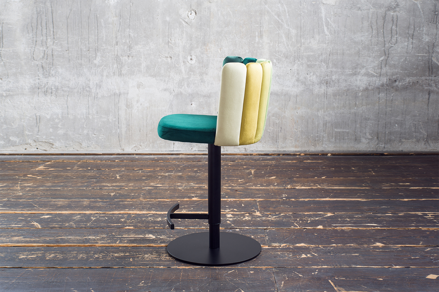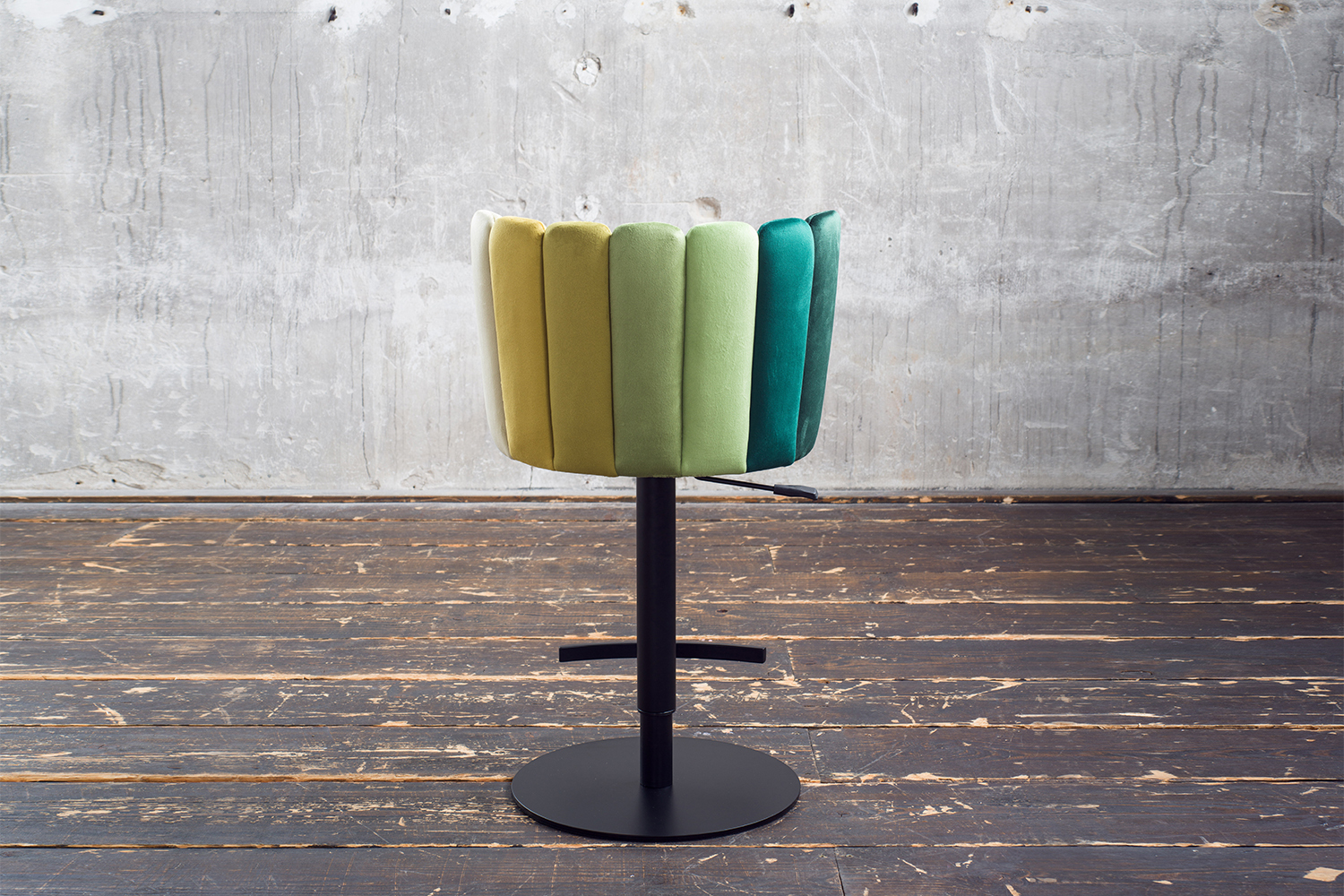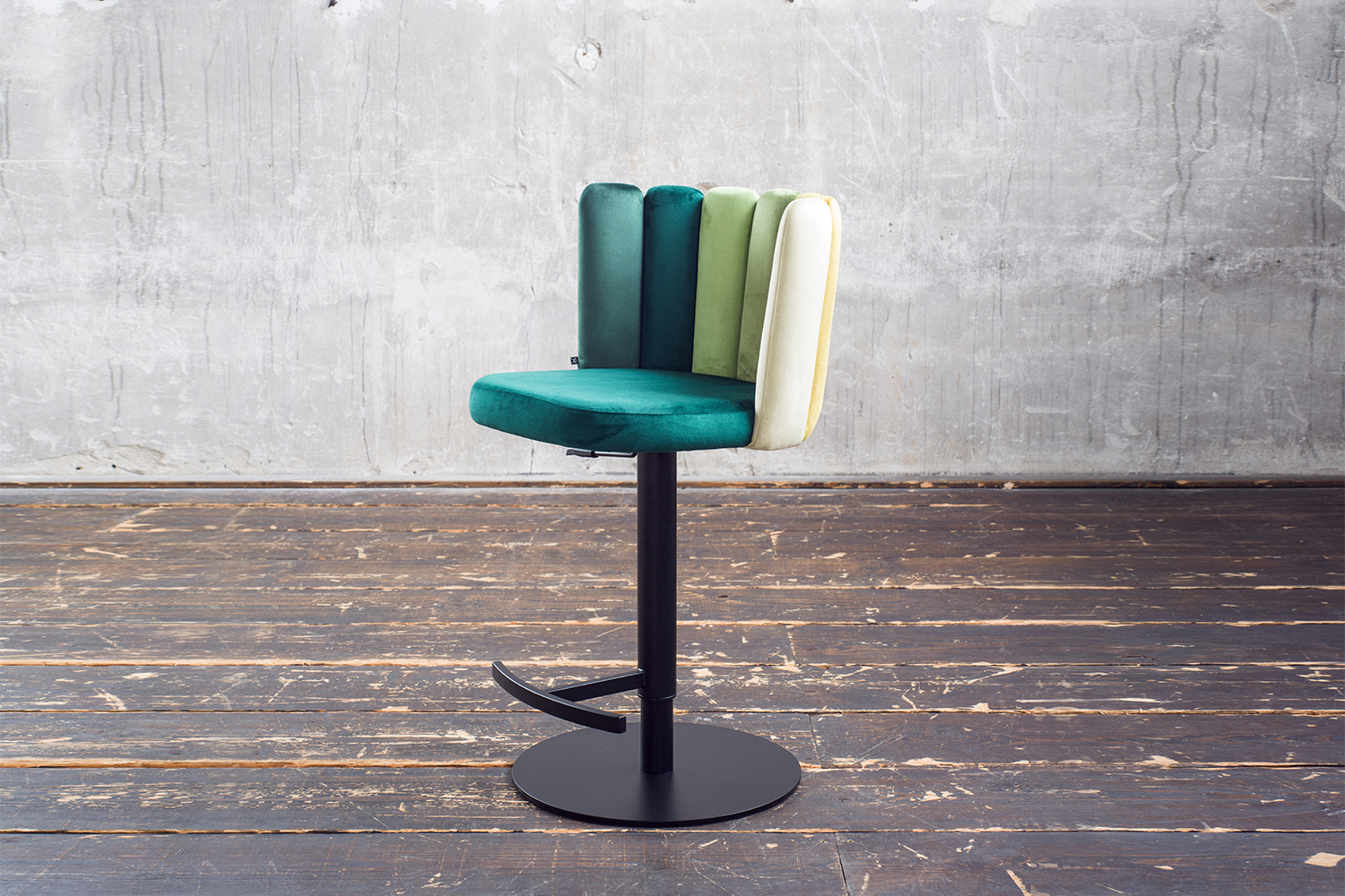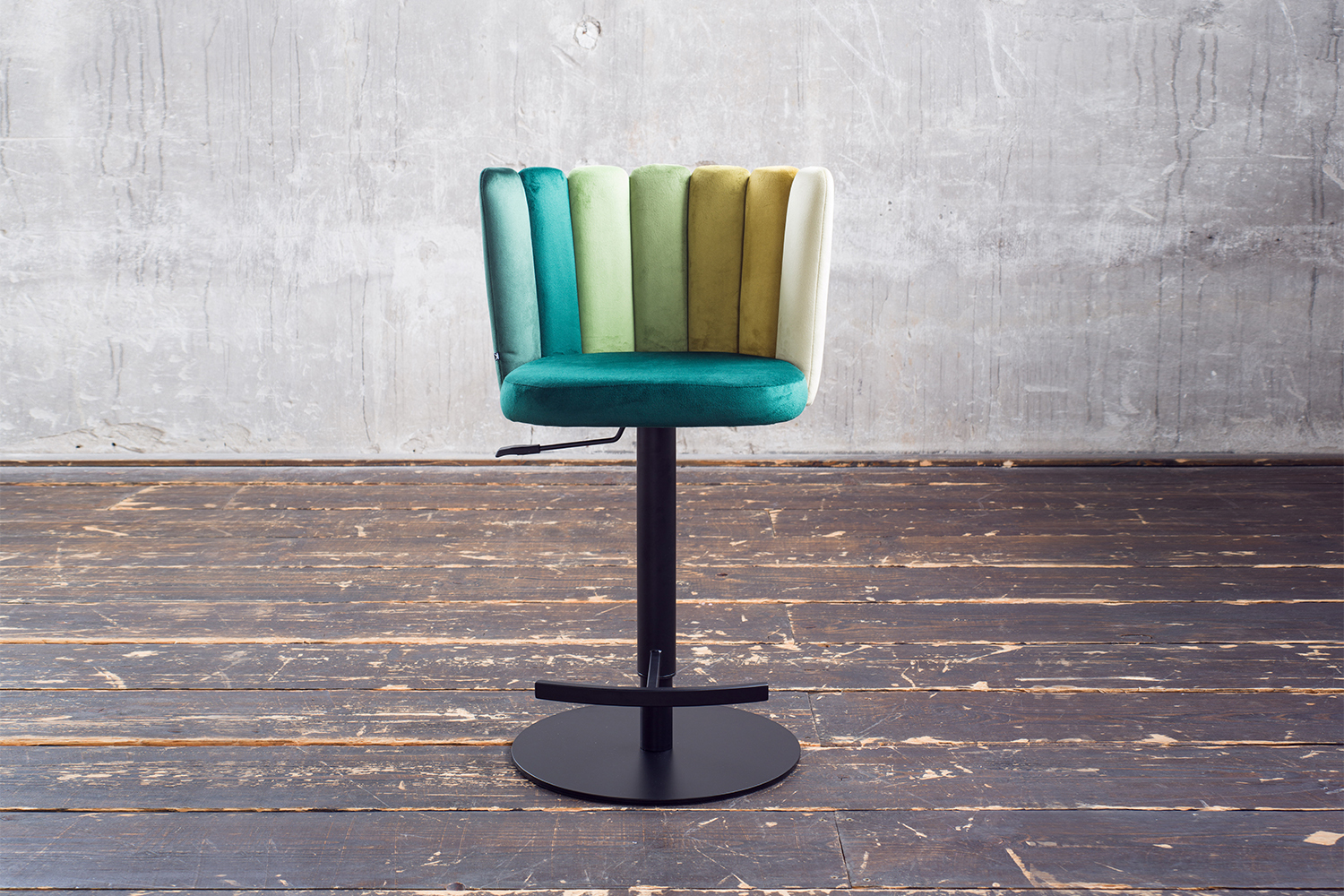 Der Barhocker JADA von KAWOLA vereint angenehmen Sitzkomfort und modernes Wohndesign. Hier können Sie sich bequem niederlassen und stilvoll einen Drink genießen - ganz so wie in Ihrer Lieblingsbar. Der Thekenhocker kann in der Höhe verstellt werden - von 85 cm bis hin zu 109 cm. Somit können Sie den Stuhl an Ihre individuellen Bedürfnisse anpassen, mit einer variablen Sitzhöhe von bis zu 81 cm. Mit seiner 360° Drehfunktion bietet er zusätzlich ein Höchstmaß an Flexibilität und Bewegungsfreiheit. Der Bezugsstoff aus Velvet ist sehr hochwertig verarbeitet, und das aufwendig gestaltete Design der Rückenlehne in verschiedenen Farbtönen verleiht dem Stuhl seinen besonderen Look. Mit seinem eleganten Design und den praktischen Funktionen bringt der Barhocker JADA echtes Lounge-Ambiente in Ihr Zuhause.Produktdetails