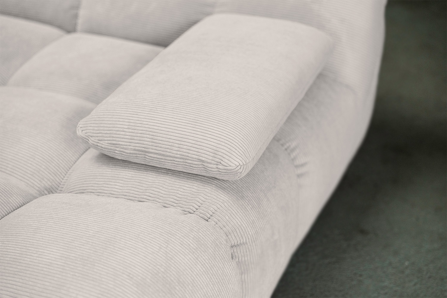 Der Bezug aus hochwertigem Feincord begeistert mit seiner weichen Haptik und verleiht dem Sofa einen trendigen, wohnlichen Look. Gleichzeitig ist das Material strapazierfähig und pflegeleicht – ideal für den Alltag.