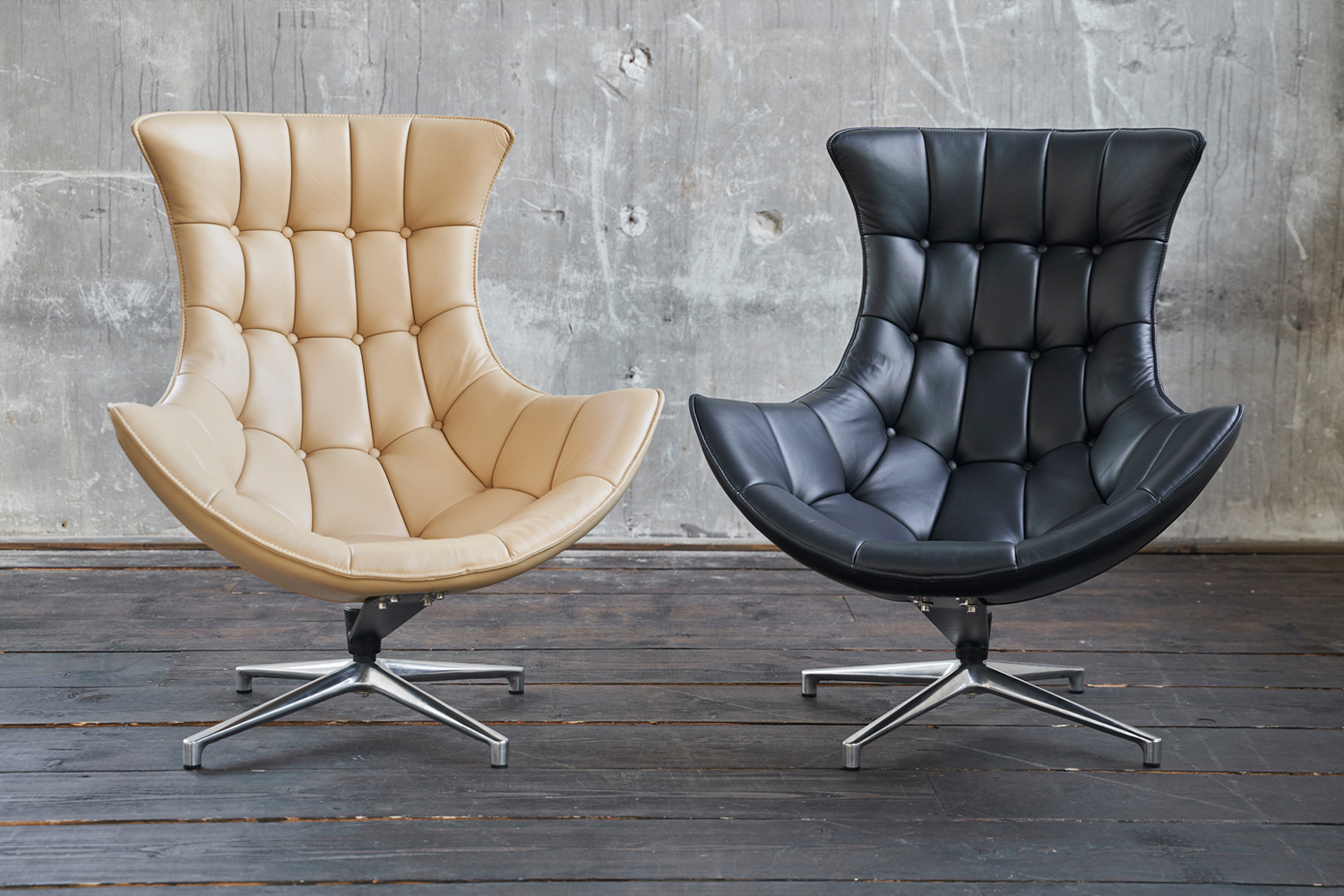 KAWOLA Drehsessel SKIO Sessel Leder matt schwarz