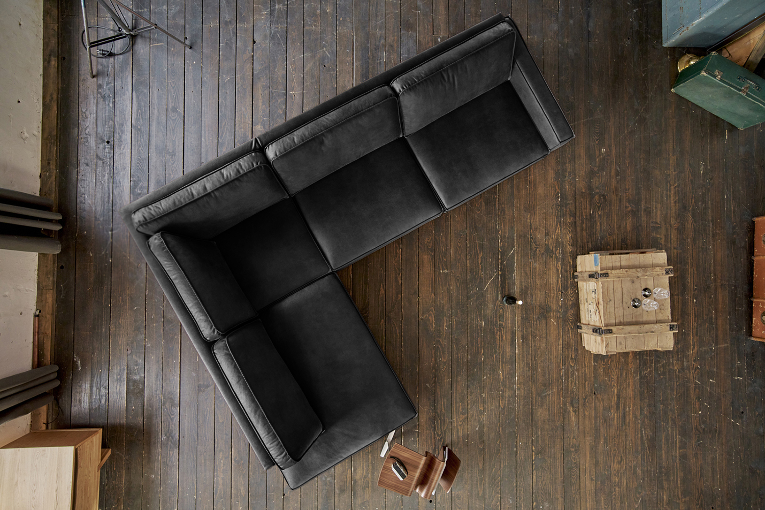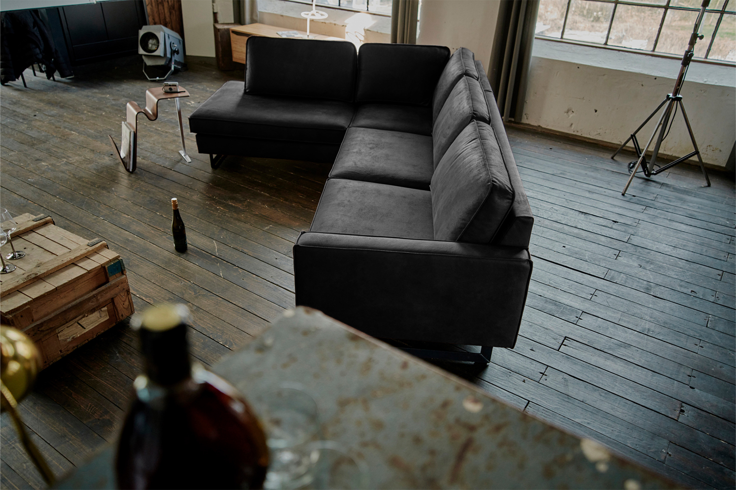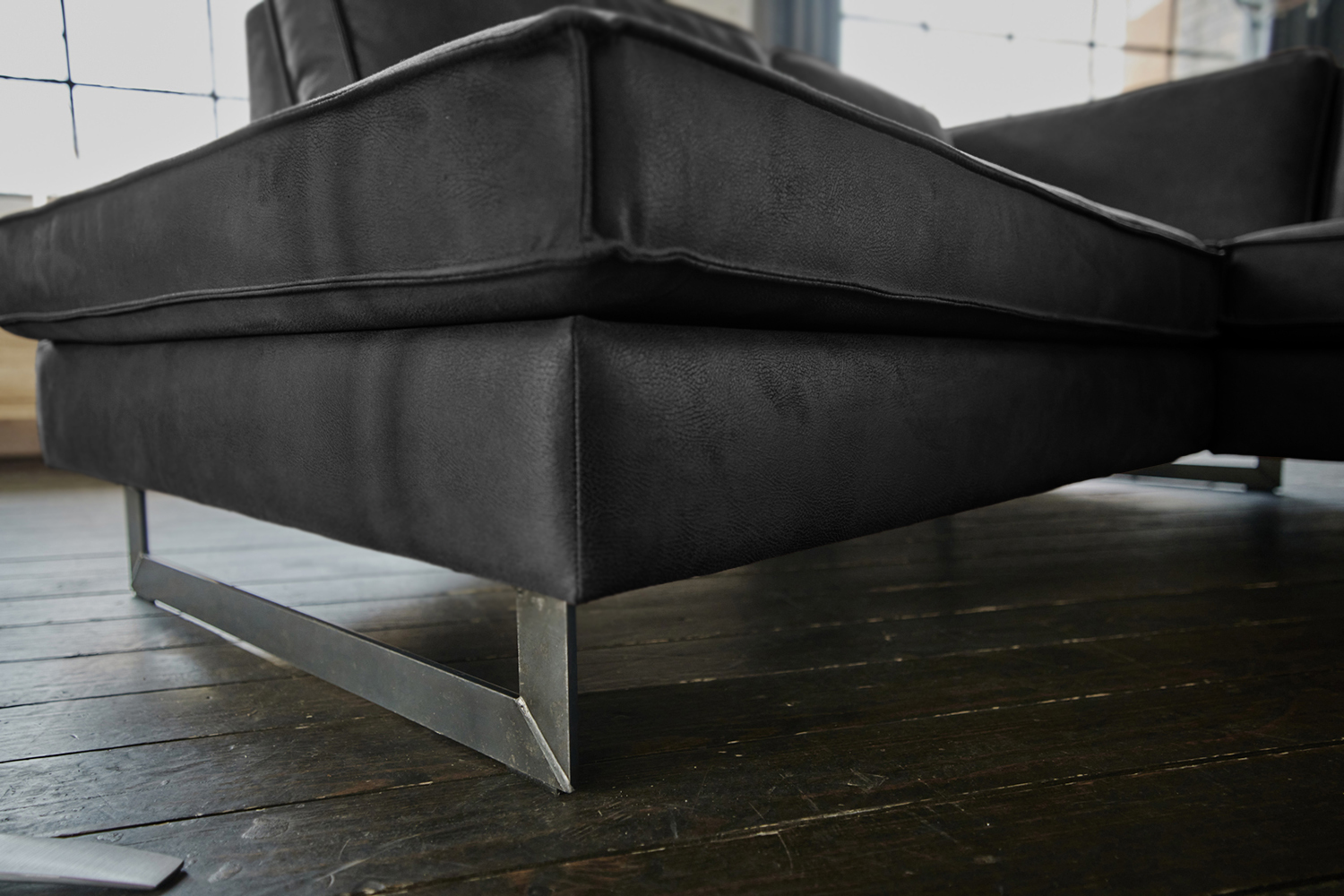 Extreme Robustheit ist durch das massive Holzgestell ebenso gegeben wie eine komfortable und legere Polsterung für ein weiches Sitzvergnügen. Trotz seiner großflächigen Maße lässt sich das Ecksofa in allen Räumlichkeiten flexibel positionieren und stellt damit jederzeit ein optisches Highlight dar.