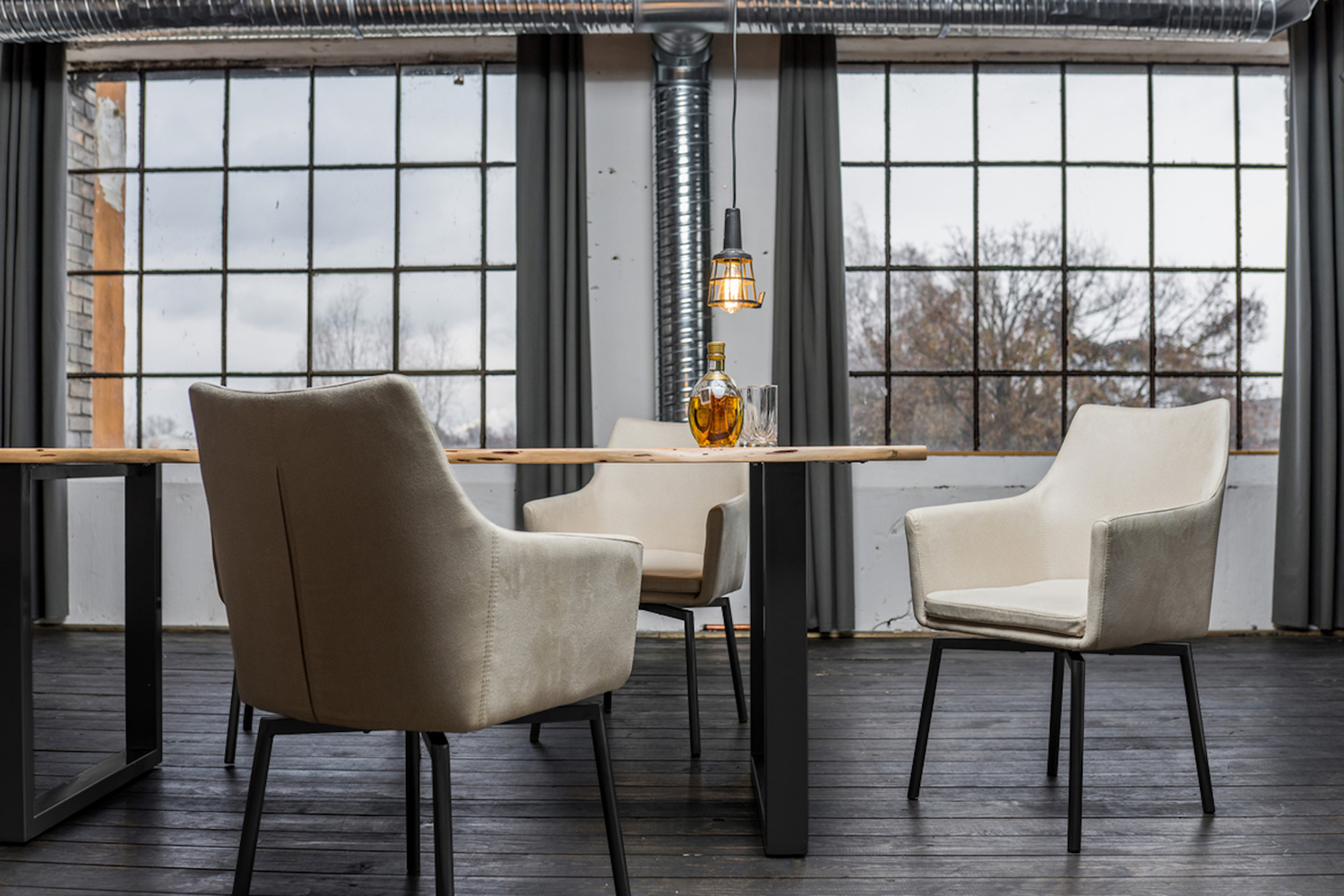 Die KAWOLA Essgruppe besteht aus einem wunderschönen Baumkantentisch, mit Massivholzplatte, der sich wunderbar in das moderne, aber auch das rustikal gemütliche Wohnambiente integrieren lässt. Besonderes Highlight des Esstisches sind die Tischkanten, die den natürlichen Formen eines Baumes entsprechen. Somit ist jeder Tisch ein Unikat und damit einzigartig. Die kubischen Metallfüße bilden hierzu einen gelungenen Kontrast in der Formsprache, die dem Massivholz Esstisch einen Hauch industriellen Charme verleihen. Passend zu diesem unverwechselbaren Esstisch wird das Bundle noch mit Cali Stühle erweitert der durch sein schlichtes und elegantes Design überzeugt. Der Esszimmerstuhl vereint das Klassische mit dem Modernen auf gekonnte Art und Weise. Das Fußgestell in schwarzem Edelstahl harmonisiert hervorragend mit der Wahl des Bezugs und verleiht dem Stuhl seinen modernen Charakter.
