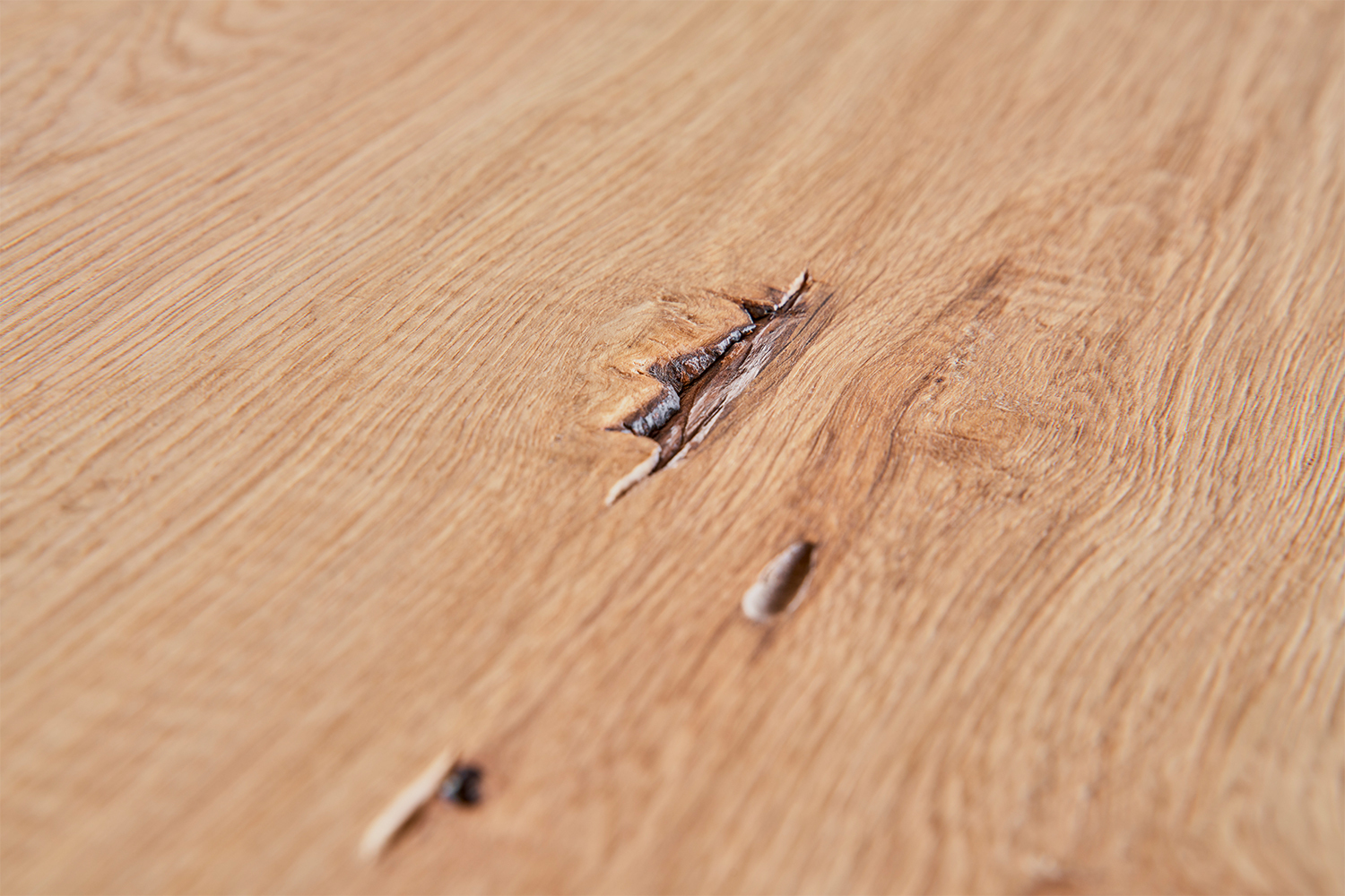 Bei diesem Baumkantentisch handelt es sich um ein Naturprodukt. Das macht ihn zu einem Unikat, jeder Tisch ist einzigartig. Maßabweichungen, Astlöcher und Risse sowie kleinere Unebenheiten sind warentypisch und kein Reklamationsgrund. Vorhandene Risse werden noch in der Herstellung mit Stücken der gleichen Holzart ausgefüllt. Daraus resultierende farbliche Abweichungen stellen ebenfalls keinen Reklamationsgrund dar.