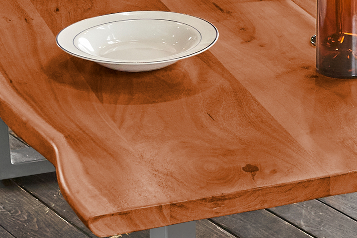 Bei diesem Baumkantentisch handelt es sich um ein Naturprodukt. Das macht ihn zu einem Unikat, jeder Tisch ist einzigartig. Maßabweichungen, Astlöcher und Risse sowie kleinere Unebenheiten sind warentypisch und kein Reklamationsgrund. Vorhandene Risse werden noch in der Herstellung mit Stücken der gleichen Holzart ausgefüllt. Daraus resultierende farbliche Abweichungen stellen ebenfalls keinen Reklamationsgrund dar.