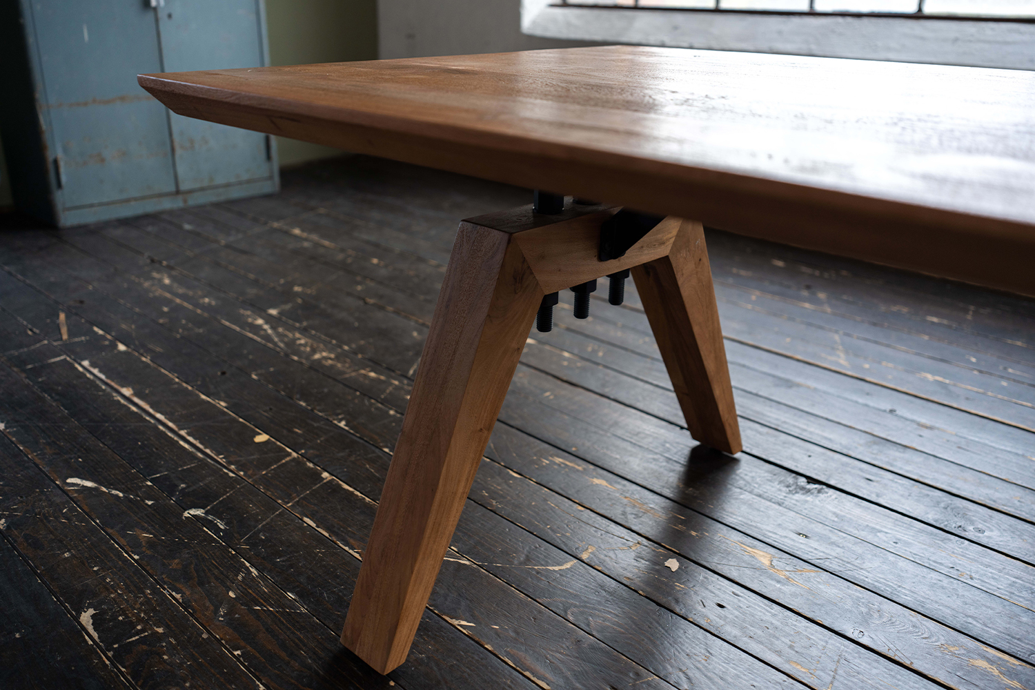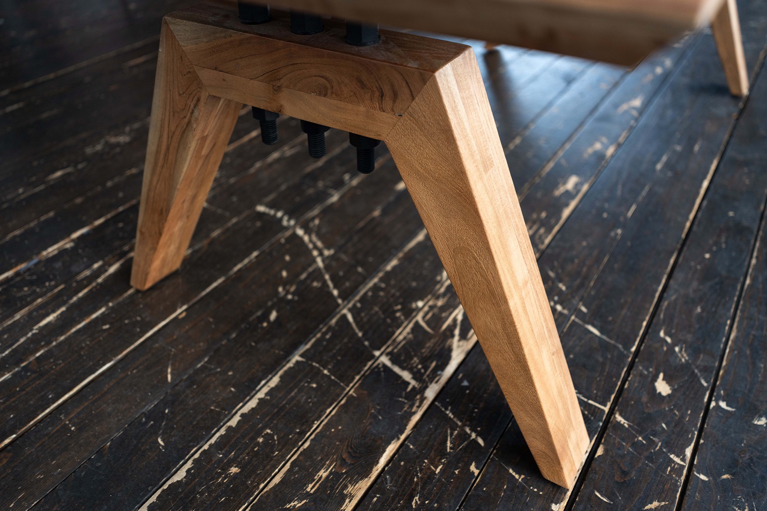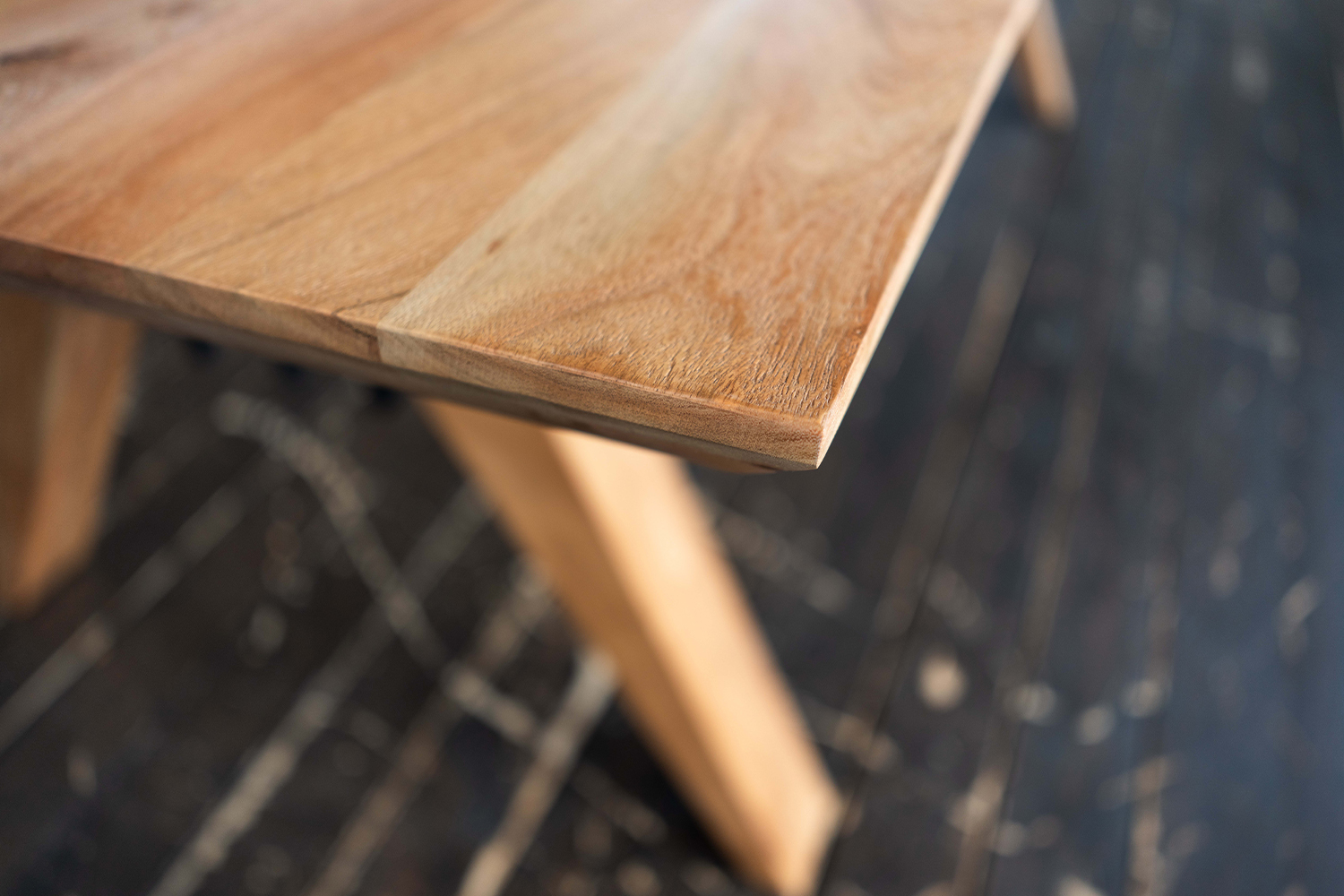 Das rustikal geschweißte, schwarz lackierte Untergestell im Industriedesign verleiht dem Tisch eine moderne, industrielle Note. Diese gelungene Kombination aus natürlichem Holz und robustem Metall macht den Tisch zu einem Design-Highlight in Ihrem Esszimmer.