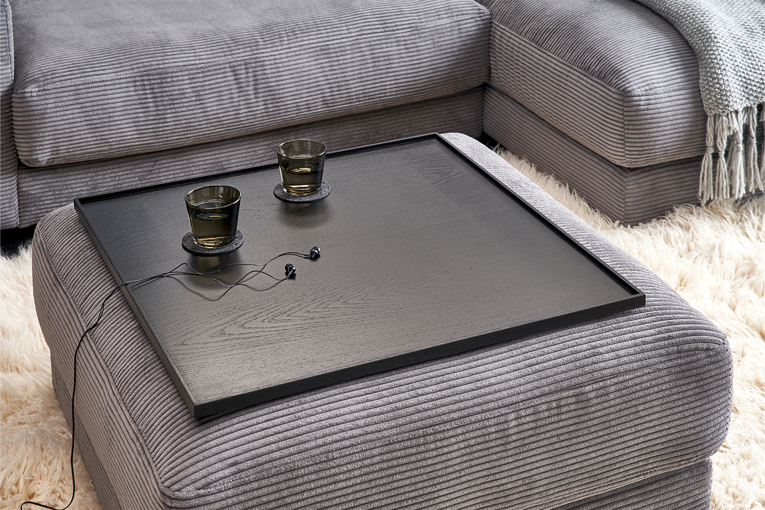 Dank seiner Größe und Form eignet es sich wunderbar als Auflage für den Big Hocker MADELINE und bleibt sicher an Ort und Stelle, ohne zu verrutschen. Funktionieren Sie Ihren Hocker ganz einfach zum Couchtisch oder Beistelltisch um. So können Sie sich ganz bequem zurücklehnen und Ihre Snacks in Reichweite haben.
