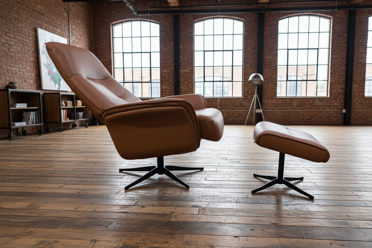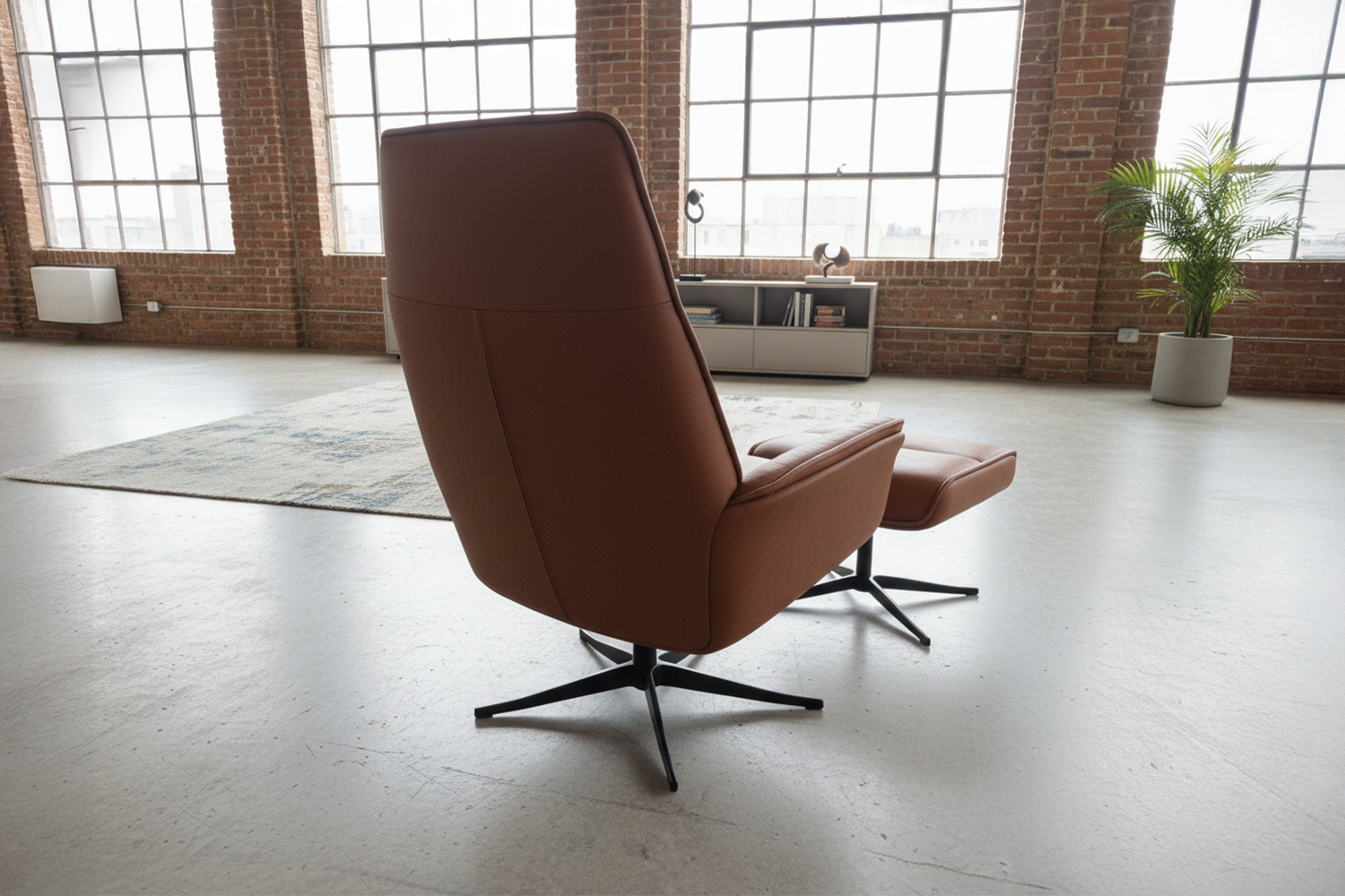 Mit der integrierten Relaxfunktion können Sie sich einfach zurücklehnen und mühelos Ihre persönliche Wohlfühlposition finden. Die drehbare Sitzfläche macht den Sessel flexibel, sodass Sie sich bequem orientieren können, ohne aufzustehen. Die Kopfstütze liefert angenehme Unterstützung bei längeren Entspannungsmomenten, und der passende Fußhocker rundet das Komforterlebnis perfekt ab.