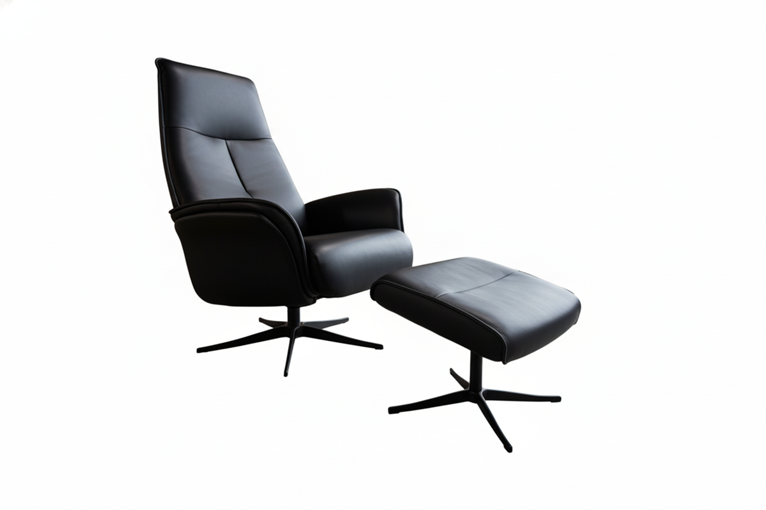 KAWOLA Relaxsessel JOSIANE Drehsessel Leder schwarz mit Hocker