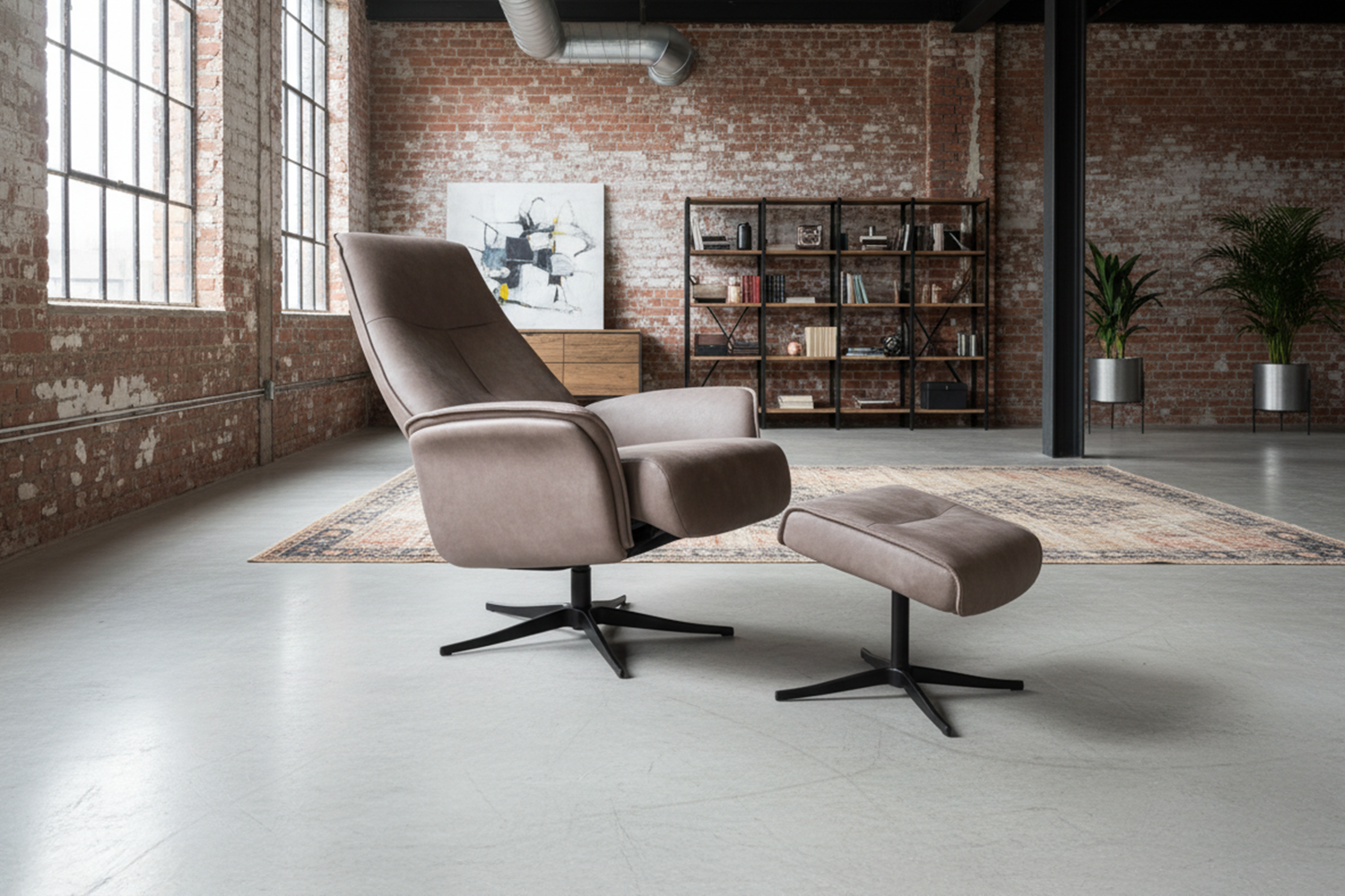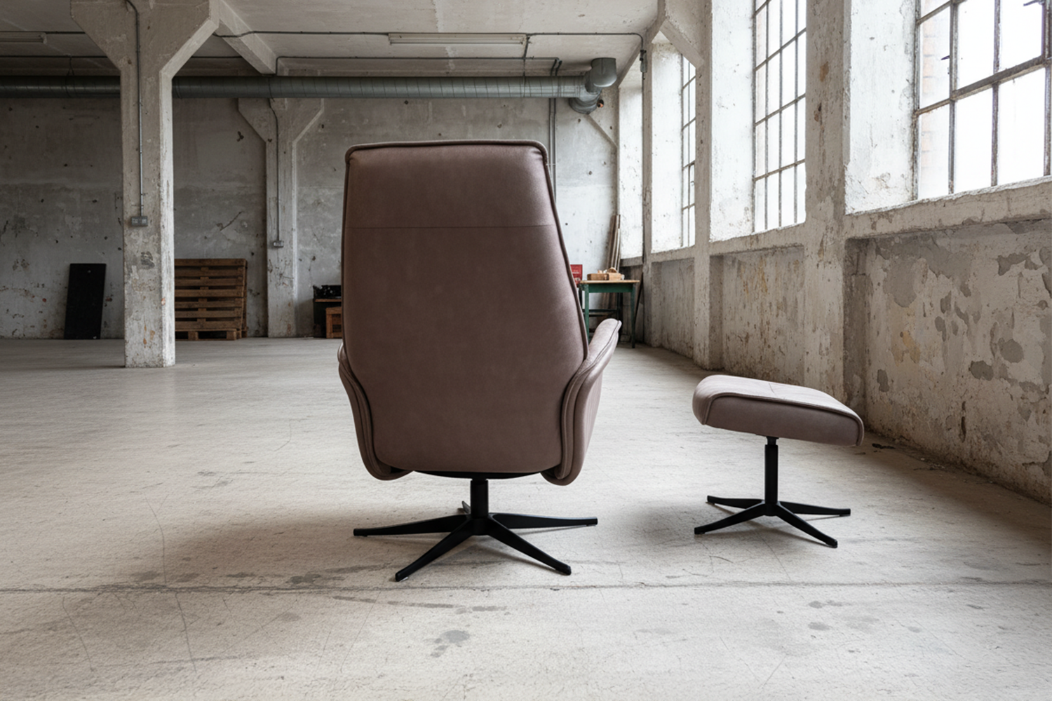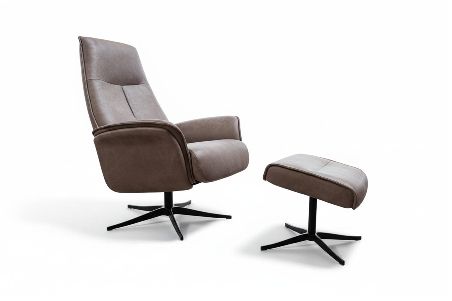 Das schwarz eloxierte Aluminiumgestell sorgt nicht nur für Stabilität, sondern setzt auch einen modernen Akzent. Mit der integrierten Relaxfunktion können Sie sich einfach zurücklehnen und mühelos Ihre persönliche Wohlfühlposition finden. Die drehbare Sitzfläche macht den Sessel flexibel, sodass Sie sich bequem orientieren können, ohne aufzustehen. Die Kopfstütze liefert angenehme Unterstützung bei längeren Entspannungsmomenten, und der passende Fußhocker rundet das Komforterlebnis perfekt ab.