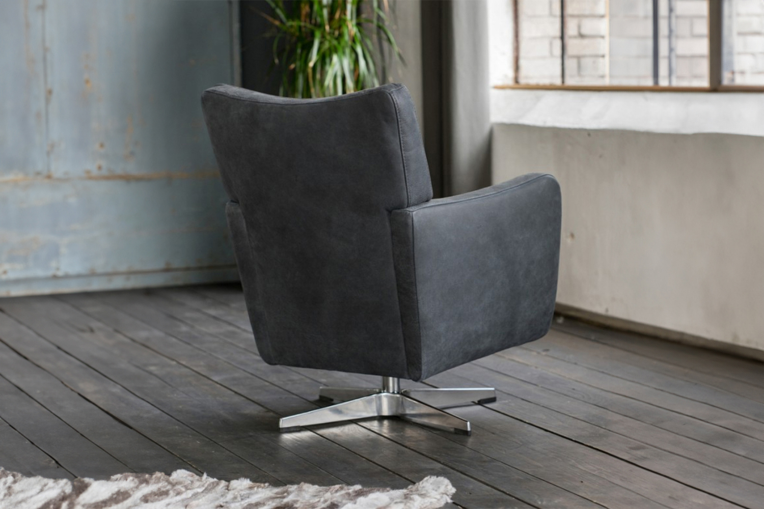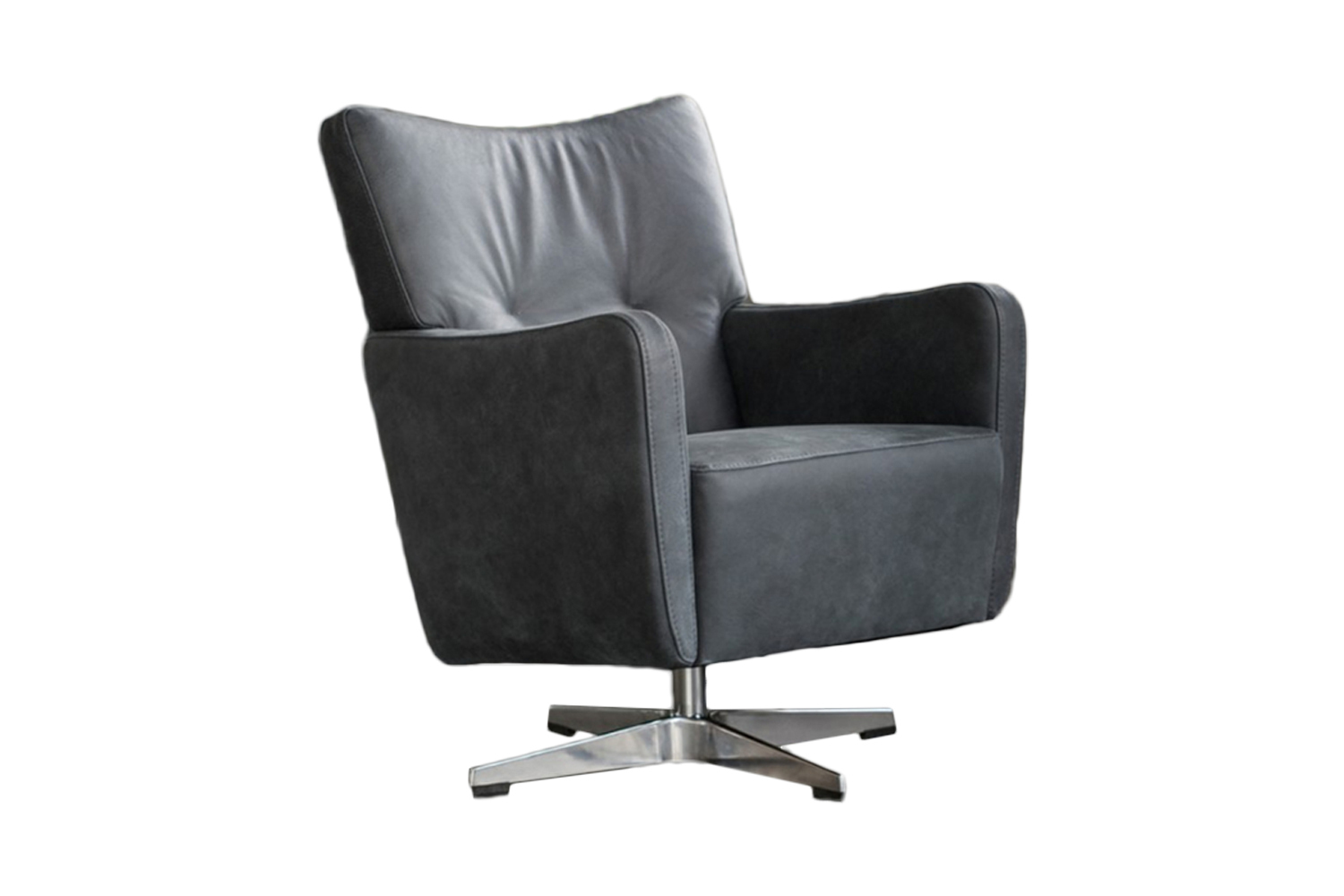 Der Sessel ALINE überzeugt durch seine klare Formsprache, welche gekonnt aufgelockert wurde durch die leicht geschwungene Rücken- und Armlehne. Der Drehsessel wurde komplett in einem wunderschönen schwarzen Leder überzogen, welches hervorragend zur Form und zur Wahl der Füße passt. Der Fuß wurde hier als Kreuzfuß Metall gefertigt. Bedingt durch die Gradlinigkeit und der Wahl des Bezuges kann der Drehsessel in jedes Wohnambiente oder auch Arbeitszimmer integriert werden. Neben dem tollen Design überzeugt der Sessel ALINE zudem durch seine Drehfunktion, durch die man frei im Raum agieren kann.Produktdetails