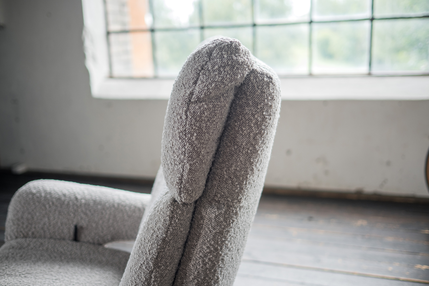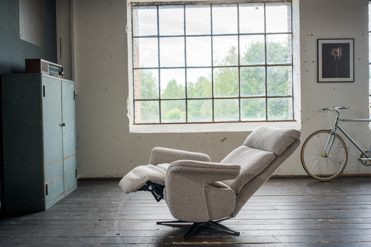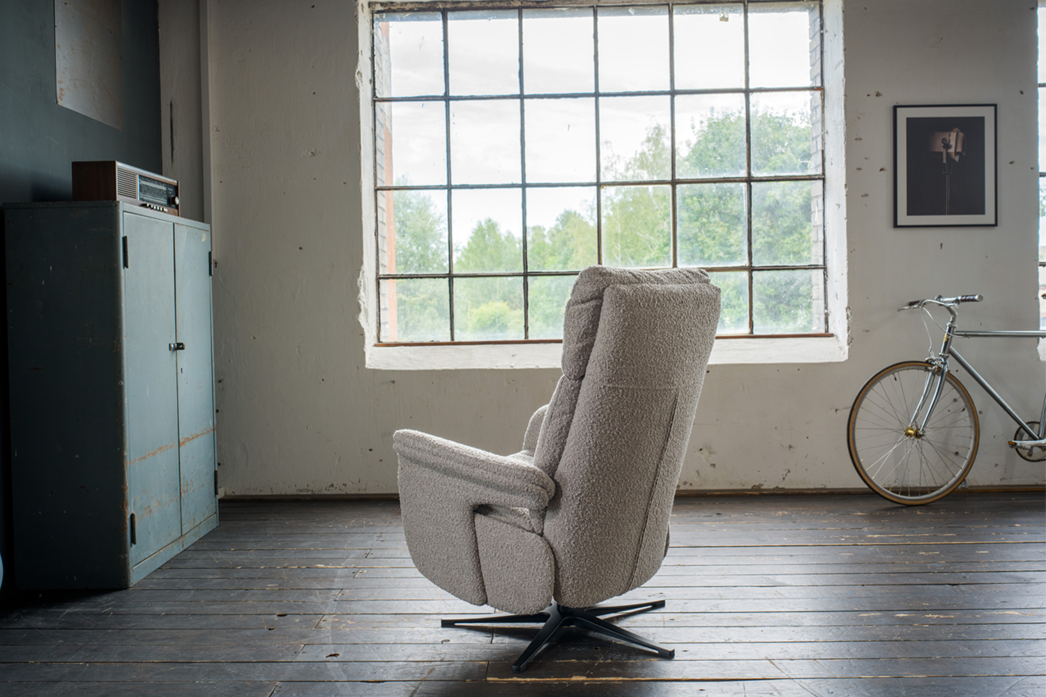 Erleben Sie mit dem Relaxsessel NAMA unvergleichlichen Komfort und verwandeln Sie Ihr Wohnzimmer in eine Wohlfühloase. Dieser bequeme Fernsehsessel mit Bezug aus hochwertigem Bouclé-Stoff besticht durch seine manuell verstellbare Relaxfunktion, die es Ihnen ermöglicht, die Sitzposition ganz nach Ihren Bedürfnissen anzupassen. Durch einen seitlichen Hebel lässt sich der Sessel in jeder gewünschten Position fixieren, während die Fußstütze sich durch sanften Druck ausfährt und eine angenehme Liegeposition ermöglicht. Ein weiteres Highlight ist die 360° Drehfunktion, die Ihnen maximale Bewegungsfreiheit bietet. Die verstellbare Kopfstütze sorgt für zusätzlichen Komfort und Unterstützung im Nackenbereich.