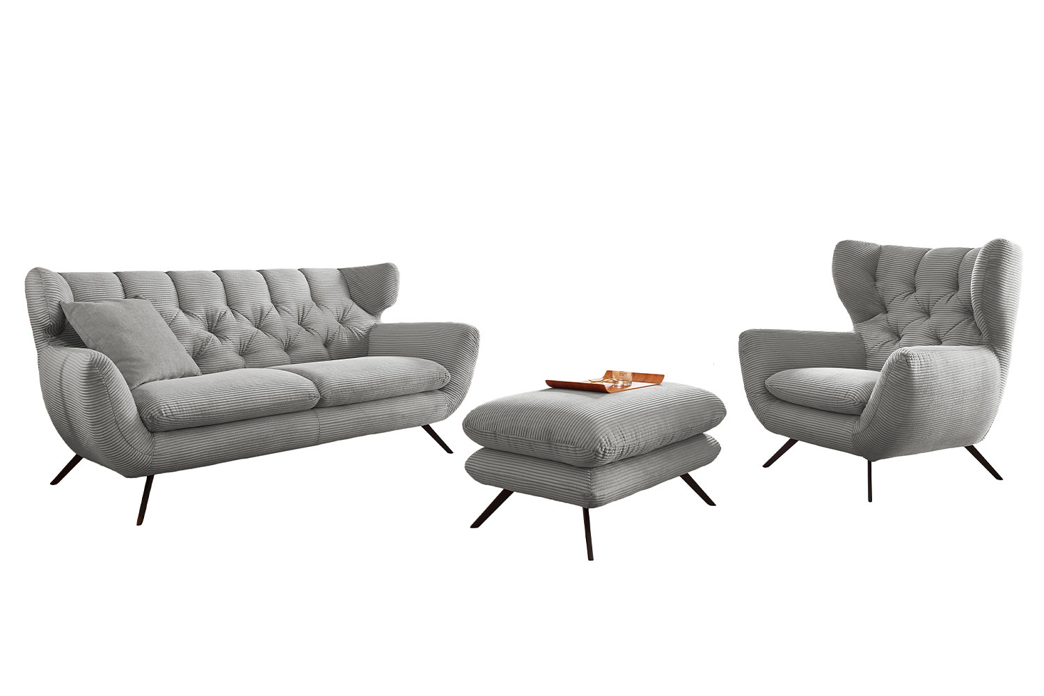 Produktinformationen "KAWOLA Sitzgruppe CHARME Sofa Sessel Hockerbank Cord hellgrau"