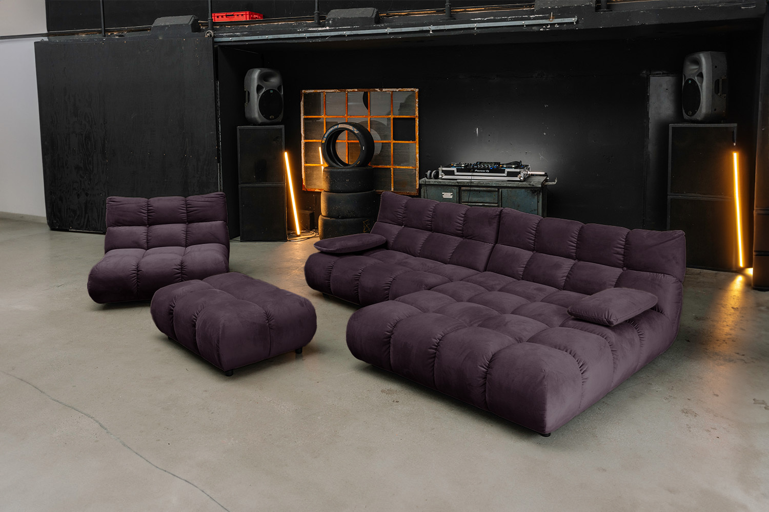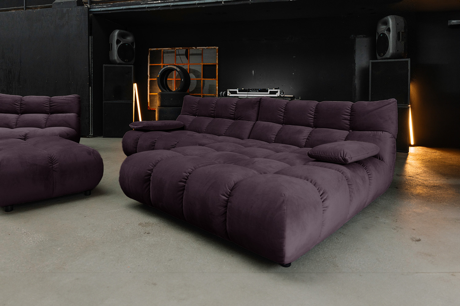 Der Bezug aus edlem Velvet verleiht der Sitzgruppe eine elegante Note. Die samtweiche Oberfläche und der feine Glanz machen jedes Möbelstück zum Blickfang und schaffen ein luxuriöses Ambiente.
