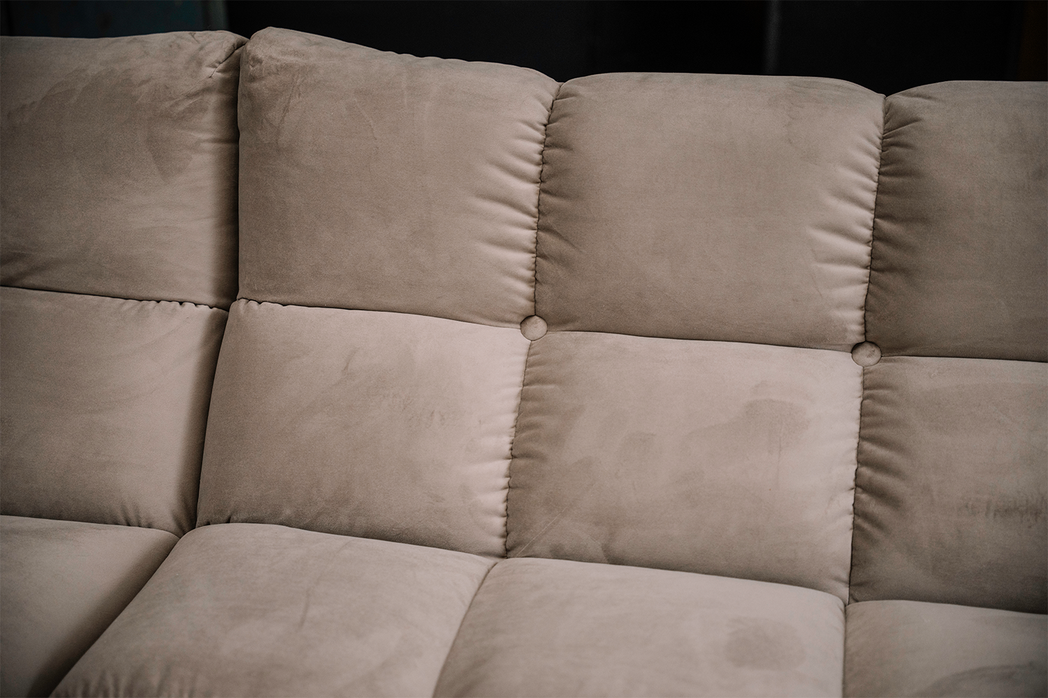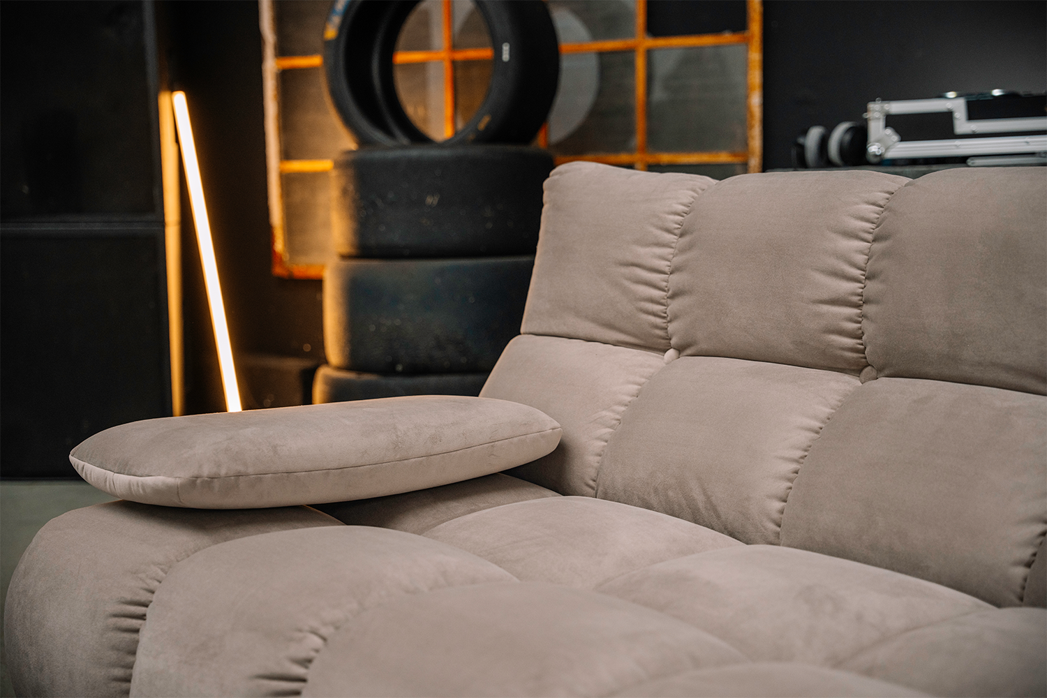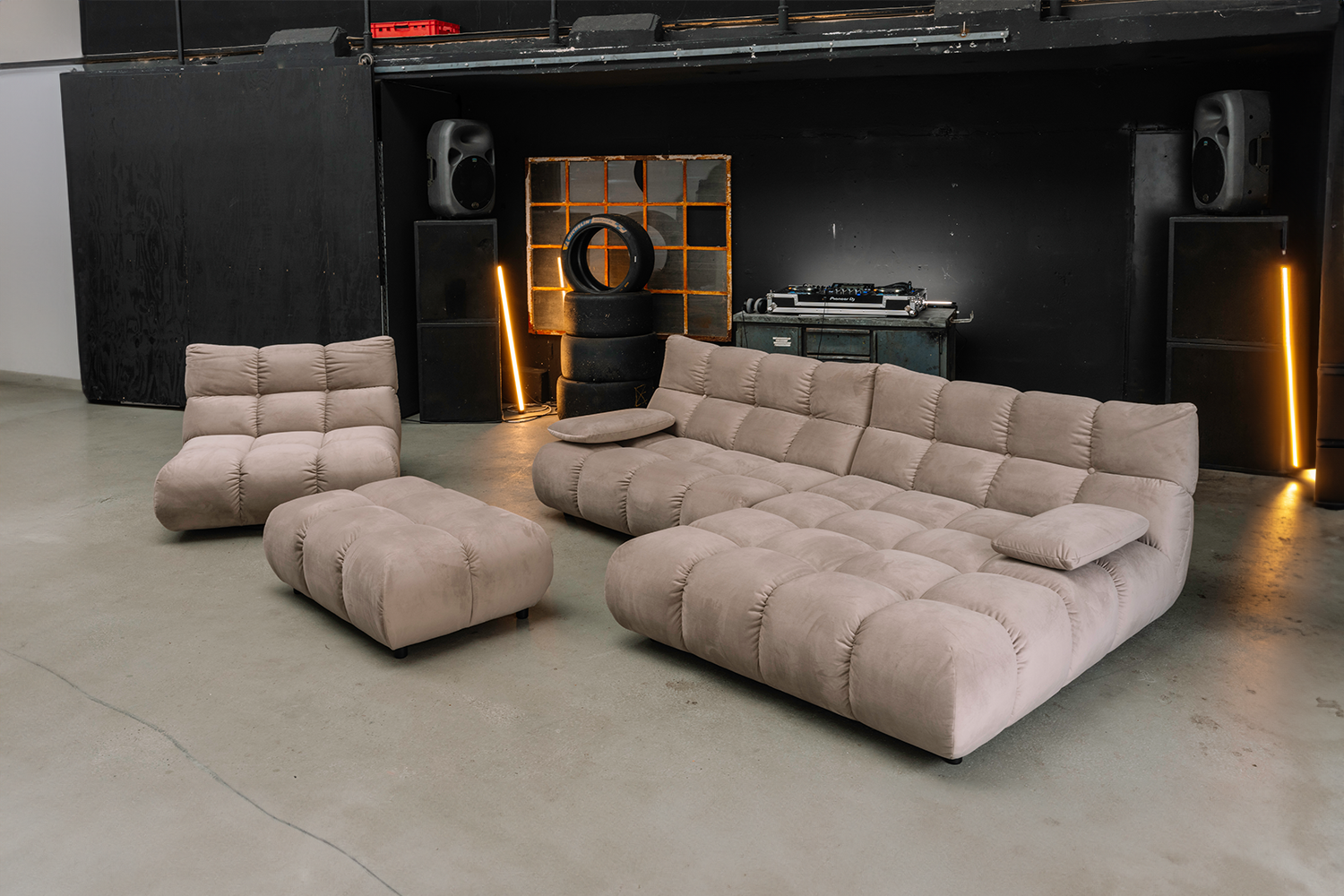 Der Bezug aus edlem Velvet verleiht der Sitzgruppe eine elegante Note. Die samtweiche Oberfläche und der feine Glanz machen jedes Möbelstück zum Blickfang und schaffen ein luxuriöses Ambiente.