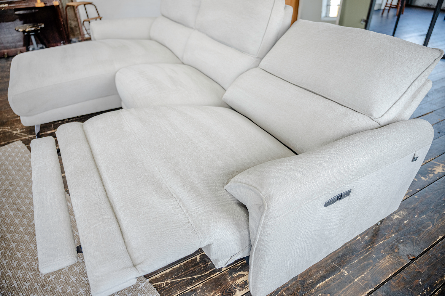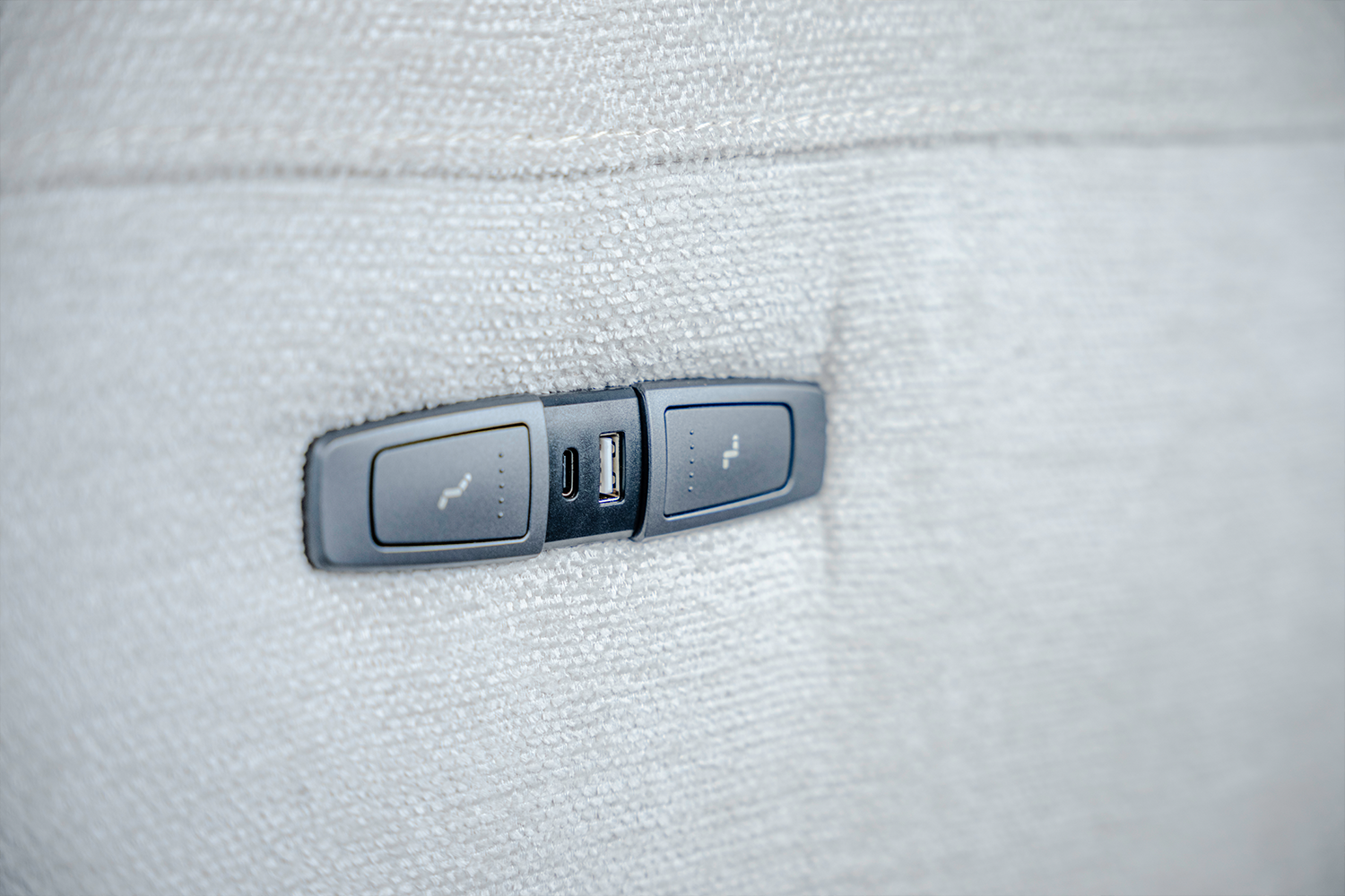 Ein besonderes Highlight ist die integrierte elektrische Relaxfunktion: Per seitlich angebrachter Taste lässt sich der Sitz sanft in die gewünschte Liegeposition fahren. Die Funktion wird bequem über das Stromnetz betrieben; ein passendes Netzkabel ist bereits im Lieferumfang enthalten. Bei vollständig ausgefahrener Relaxfunktion beträgt die Sitztiefe 103 cm, während die Gesamttiefe des Sitzes dann großzügige 156 cm erreicht – perfekt für entspannte Filmabende oder gemütliche Stunden.