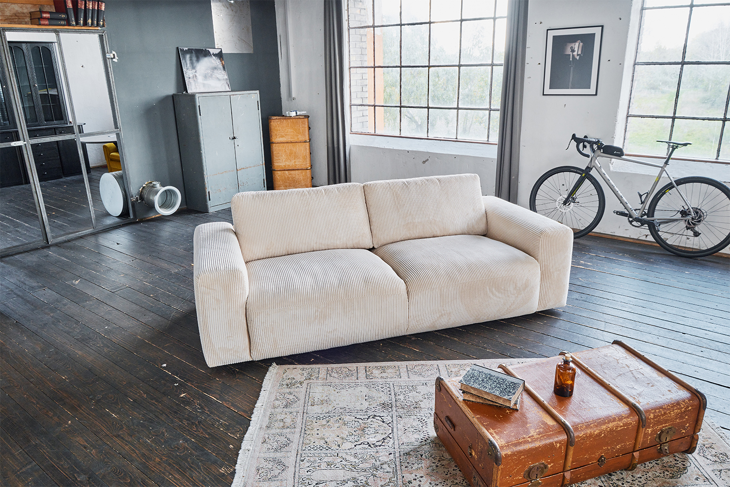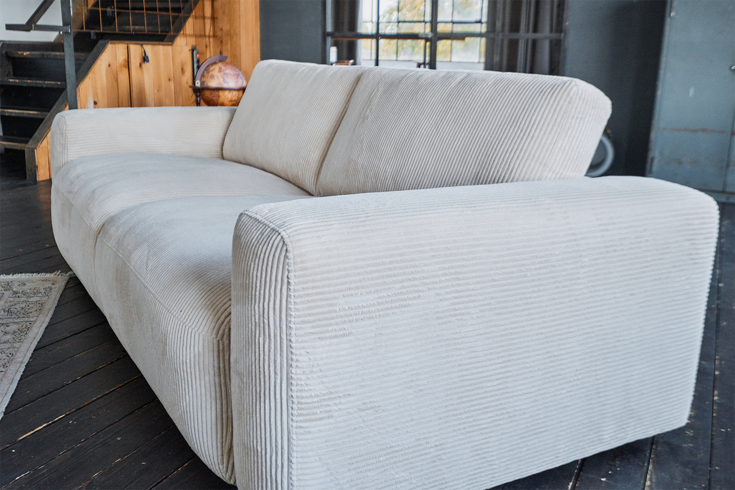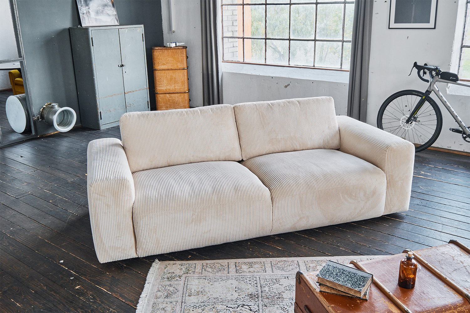 Das BODHI 3-Sitzer Sofa ist die perfekte Ergänzung für Ihr Wohnzimmer, wenn Sie Wert auf zeitgemäßes Design und hohen Sitzkomfort legen. Dieses Cord Sofa bietet mit seiner großzügigen Sitzfläche von 186 cm ausreichend Platz für drei Personen und lädt zum gemütlichen Verweilen ein. Der hochwertige Bezug sorgt nicht nur für eine ansprechende Optik, sondern ist auch strapazierfähig und pflegeleicht. Die mittelfeste Polsterung des Sofas garantiert optimalen Sitzkomfort, sodass Sie entspannte Stunden mit Familie und Freunden genießen können.