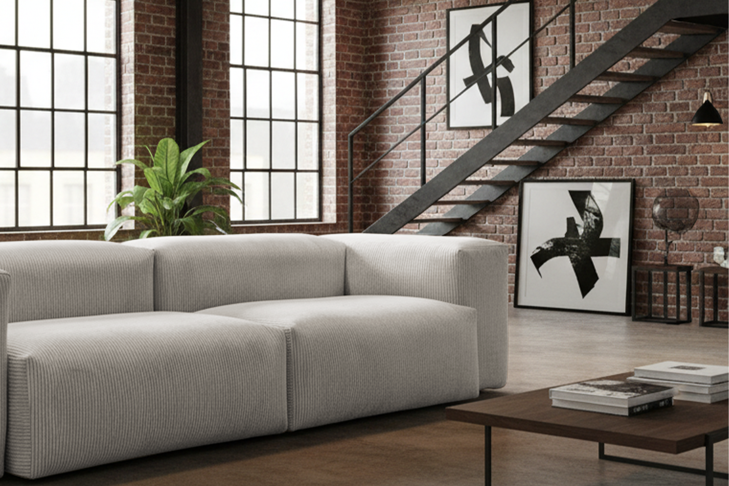 Das 4-Sitzer Sofa KAWOLA CELESTE vereint großzügige Dimensionen mit einem modernen, skulpturalen Design. Mit einer beeindruckenden Breite von 302 cm, einer Tiefe von 114 cm und einer Höhe von 72 cm bietet CELESTE viel Raum für entspannte Stunden. Der weiche Cordbezug verleiht dem Sofa eine besonders einladende Haptik und einen wohnlich-lässigen Charakter. Die feine Struktur des Stoffs sorgt für einen spannenden visuellen Effekt, der das kubische Design harmonisch unterstreicht.