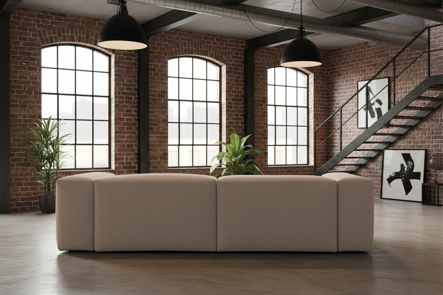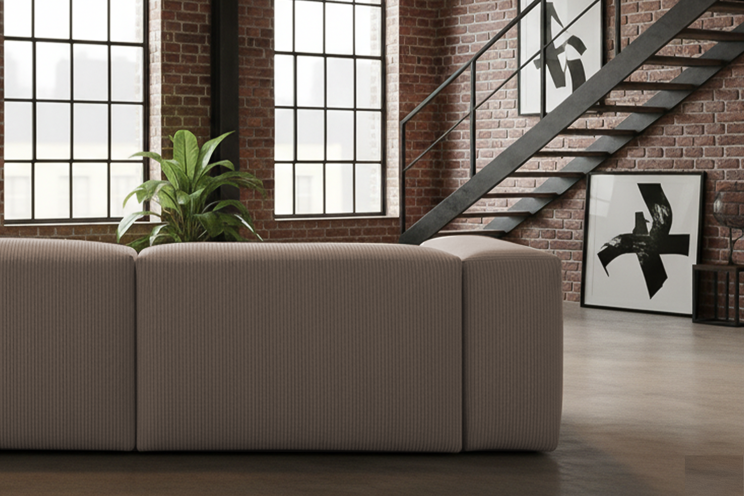 Das 4-Sitzer Sofa KAWOLA CELESTE vereint großzügige Dimensionen mit einem modernen, skulpturalen Design. Mit einer beeindruckenden Breite von 302 cm, einer Tiefe von 114 cm und einer Höhe von 72 cm bietet CELESTE viel Raum für entspannte Stunden. Der weiche Cordbezug verleiht dem Sofa eine besonders einladende Haptik und einen wohnlich-lässigen Charakter. Die feine Struktur des Stoffs sorgt für einen spannenden visuellen Effekt, der das kubische Design harmonisch unterstreicht.
