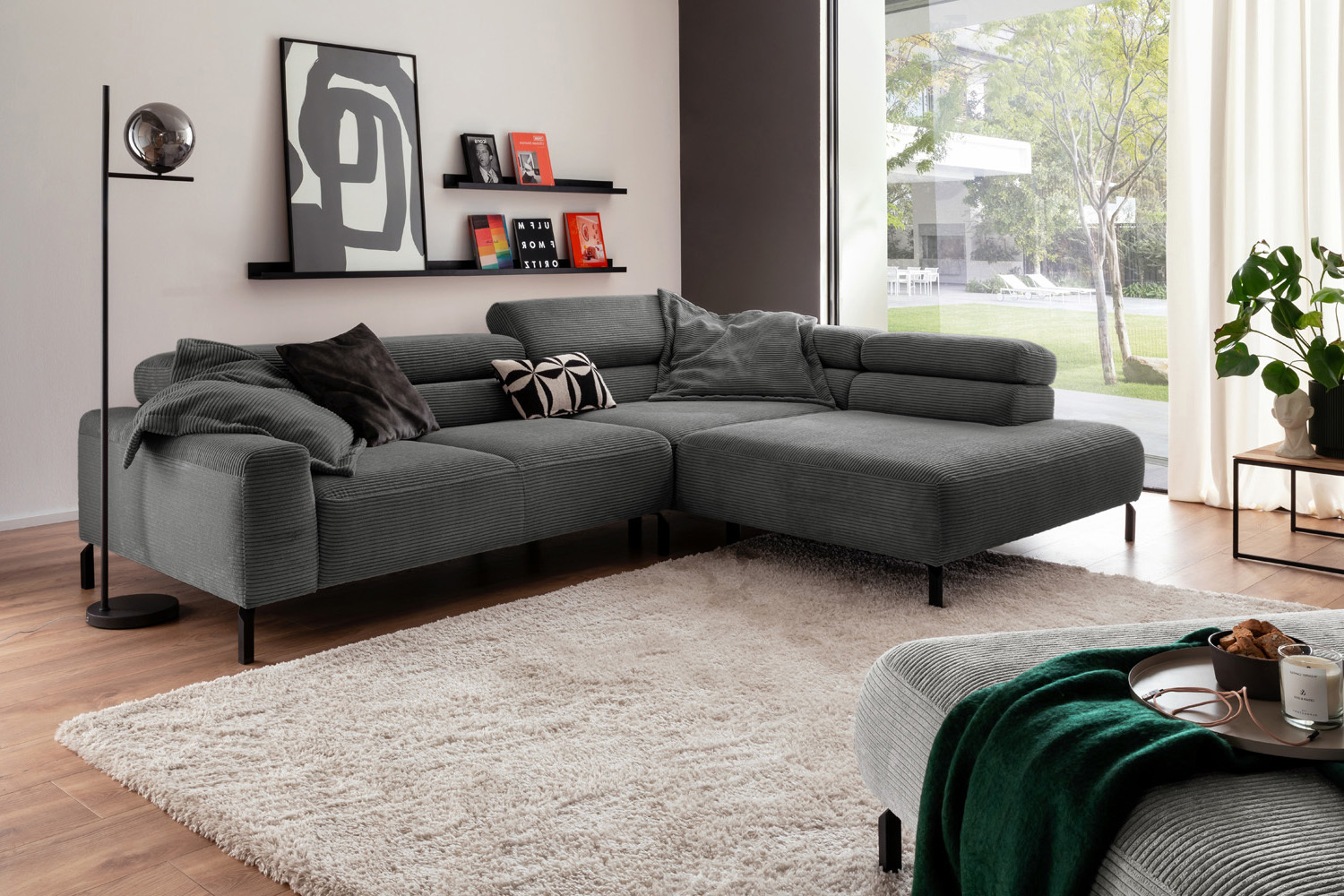 Ein Highlight ist die innovative Kopfteilverstellung, mit der Sie die Kopfteile individuell neigen oder aufrecht stellen können. Perfekt für entspannte Abende beim Lesen oder Filme schauen. Das Ecksofa DELIA vereint Funktionalität und Stil auf höchstem Niveau.