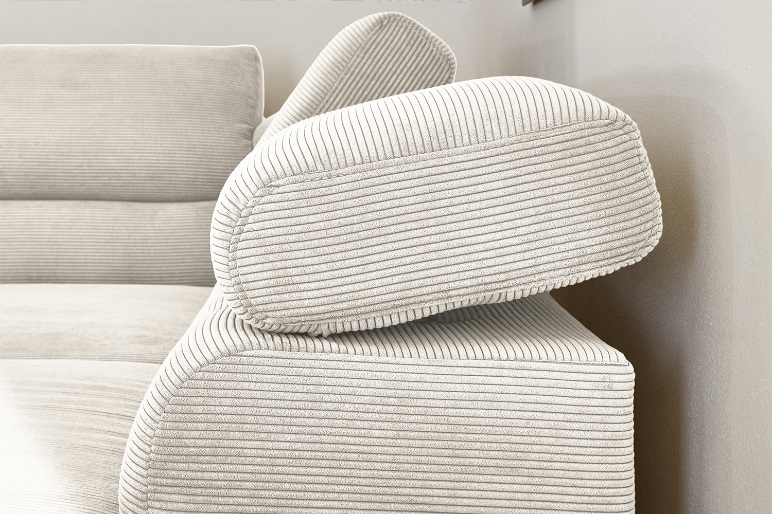 Ein Highlight ist die innovative Kopfteilverstellung, mit der Sie die Kopfteile individuell neigen oder aufrecht stellen können. Perfekt für entspannte Abende beim Lesen oder Filme schauen. Das Ecksofa DELIA vereint Funktionalität und Stil auf höchstem Niveau.