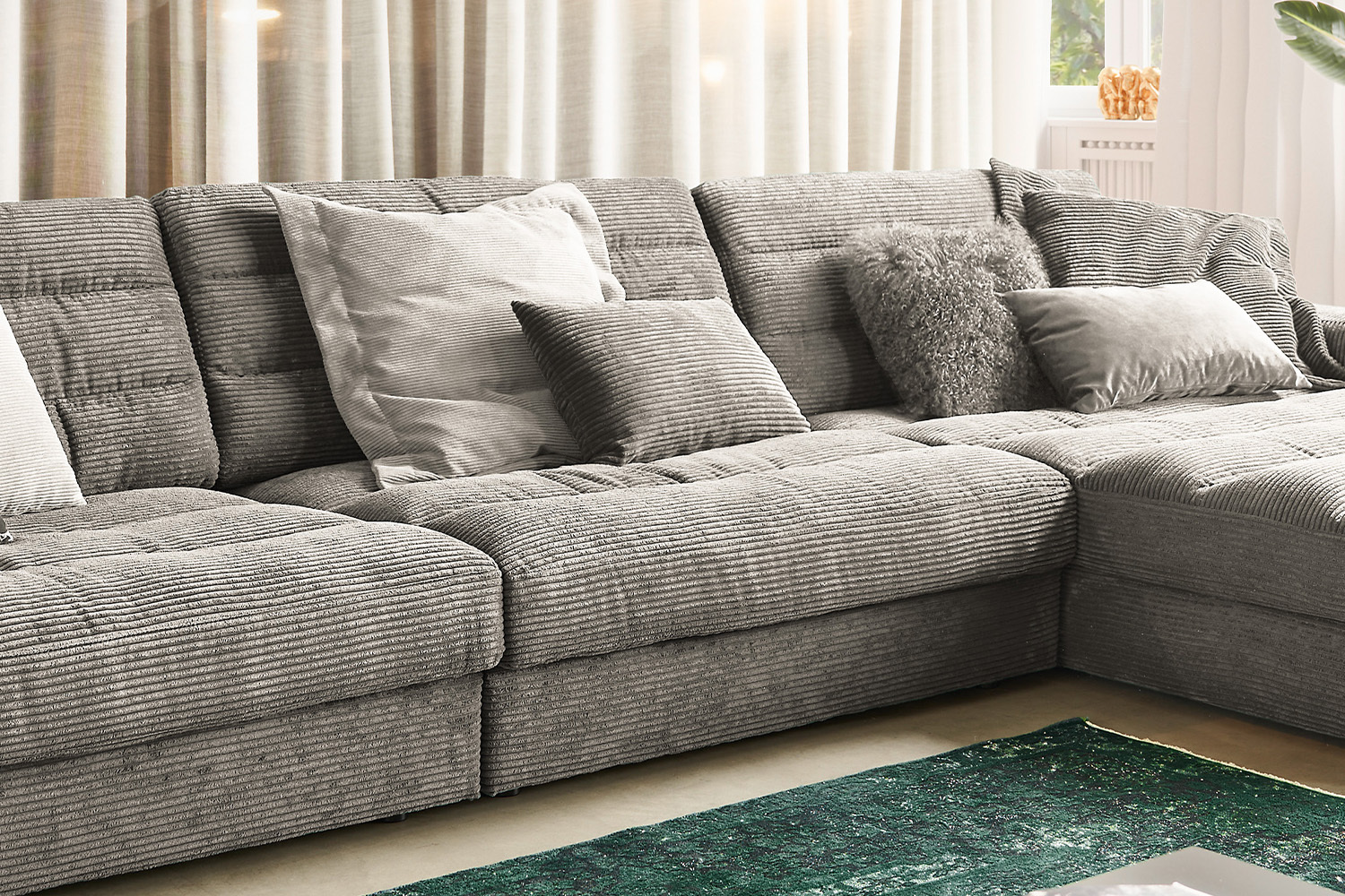 KAWOLA Sofa LANA XL Ecksofa Cord steingrau
