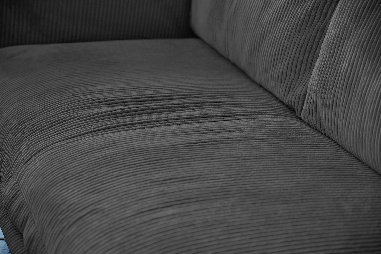 Das KAWOLA Ecksofa QUENYA verbindet moderne Designwelten mit klassischer Eleganz. Das Besondere: Mit seinen zwei verschiedenen Bezugsstoffen verfügt es über einen außergewöhnlichen Look, der sofort in Auge fällt. Sitzfläche sowie Rücken- und Seitenkissen sind in angesagten Cord gehüllt. Der Korpus wiederum sorgt mit seinem feinen Velvet-Bezug für einen sowohl optisch als auch haptisch reizvollen Kontrast, der durch die stylischen schwarzen Holzfüße noch verstärkt wird. Die angenehm weiche Polsterung garantiert außerdem höchsten Sitzkomfort. Das Sofa QUENYA macht überall eine gute Figur und ist eine echte Bereicherung für Ihr Zuhause!