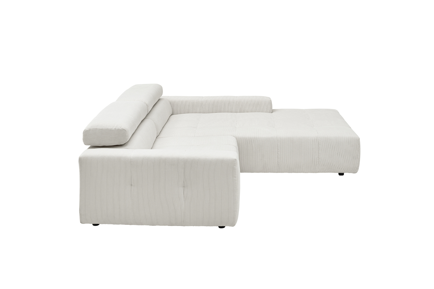 Entdecken Sie das stilvolle Ecksofa RENO von KAWOLA, das mit seinem hochwertigen Cordbezug und seiner raffinierten Kopfteilverstellung beeindruckt. Der Rundumbezug aus erstklassigem Cord verleiht diesem Ecksofa einen zeitlosen Charme und eine angenehme Haptik. Der ergonomisch geformte Rücken aus Schaumstoff sorgt für zusätzlichen Komfort, während die Wellenunterfederung und der PUR-Schaum im Sitzbereich ein angenehmes Sitzgefühl gewährleisten. Die innovative Kopfteilverstellung ermöglicht es Ihnen, die Kopfteile individuell zu neigen oder aufrecht zu stellen, um Ihre persönliche Entspannungsposition zu finden. Mit einem mittelfesten Sitzkomfort bietet das Ecksofa RENO die perfekte Kombination aus Stil und Gemütlichkeit. Erleben Sie pure Entspannung in Ihrem Wohnzimmer mit diesem bequemen und ansprechenden Möbelstück.