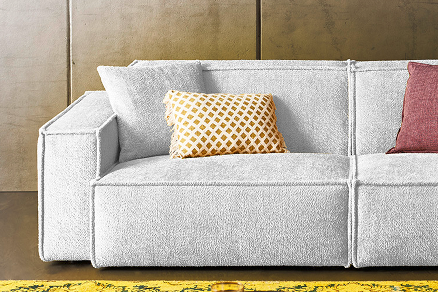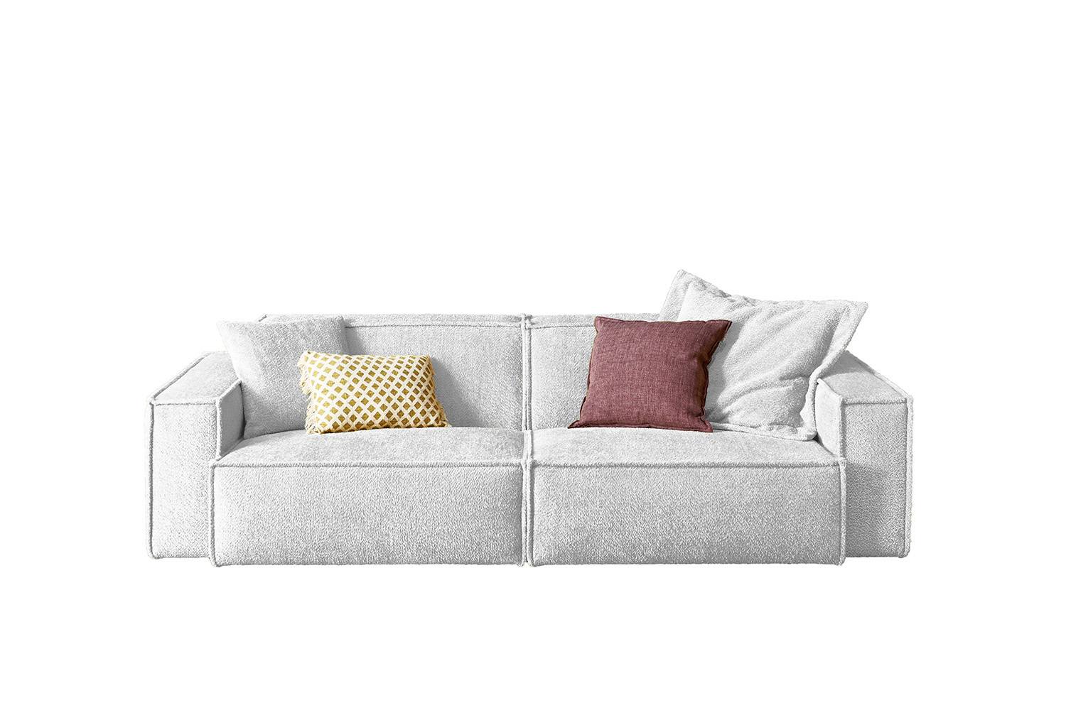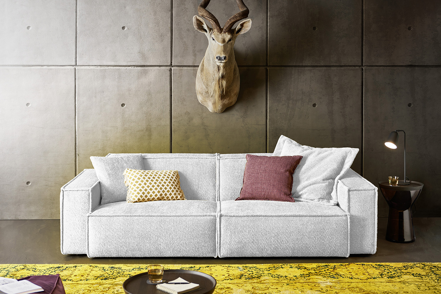 Das KAWOLA Sofa SAMU besticht durch seinen hervorragenden Sitzkomfort, der durch den äußerst weichen und legeren Polsteraufbau zustande kommt und zum Verweilen und Entspannen einlädt. Die Polsterung passt sich der Körperform an; Sitzabdrücke sowie Wellenbildung der Bezüge sind warentypisch. Der angenehm weiche Bezug erinnert sowohl optisch als auch haptisch an Schafswolle und sorgt für flauschiges Sitzvergnügen. Seine moderne und urbane Form verleihen dem Sofa sein unverwechselbares Aussehen und bieten ausreichend Platz, um gemütliche Abende zu verbringen. Mit seinem zeitlosen Design fügt es sich nahtlos in jede Umgebung ein und macht auch frei im Raum stehend eine gute Figur. Wenn Sie Ihrem Wohnzimmer einen außergewöhnlichen Anstrich verleihen wollen, ist das Sofa SAMU definitiv das Richtige für Sie!Produktdetails