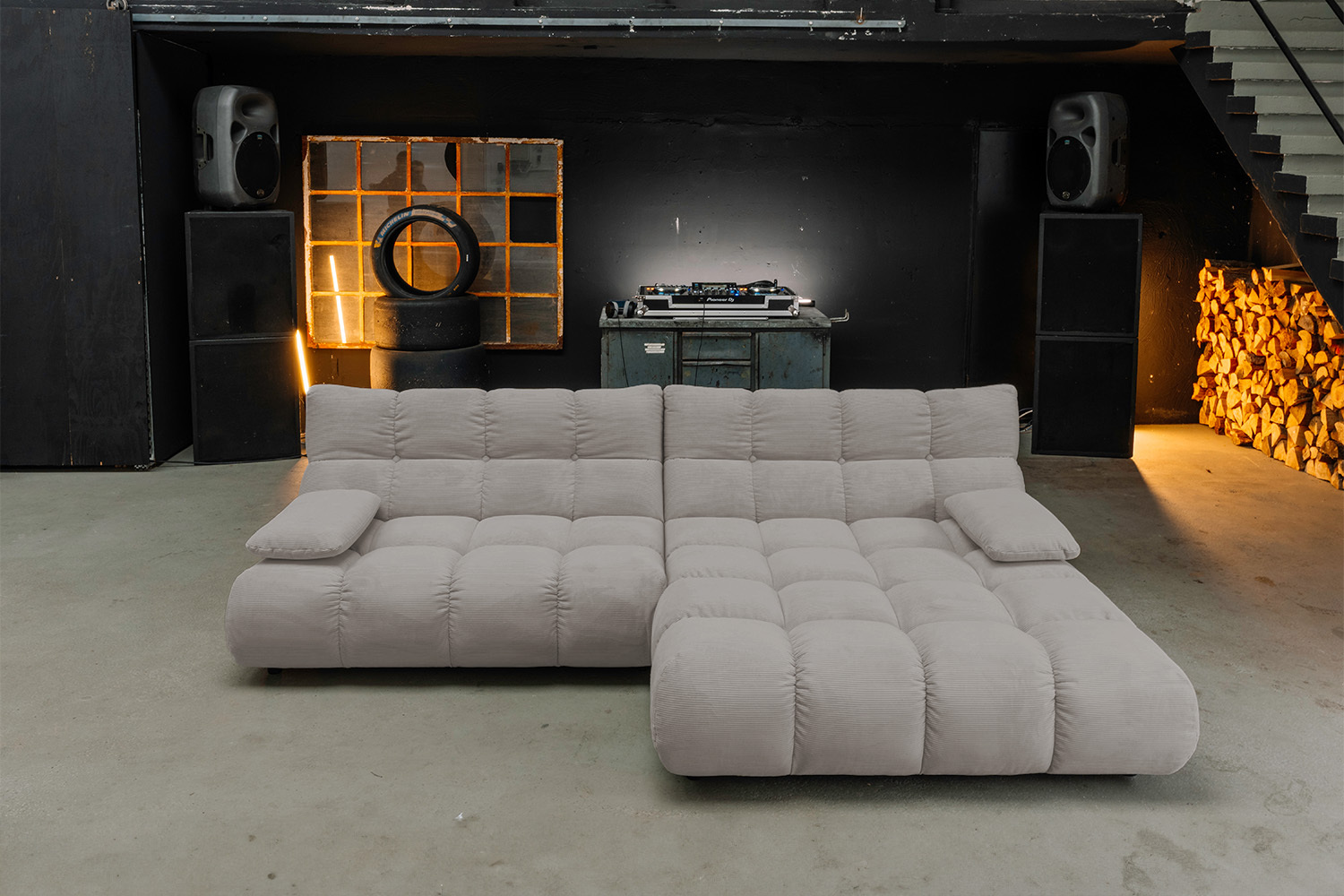 Der Bezug aus hochwertigem Feincord begeistert durch seine weiche Haptik und verleiht dem Sofa eine wohnliche, trendige Optik. Feincord ist strapazierfähig und pflegeleicht, sodass Sie lange Freude an Ihrem Ecksofa haben.