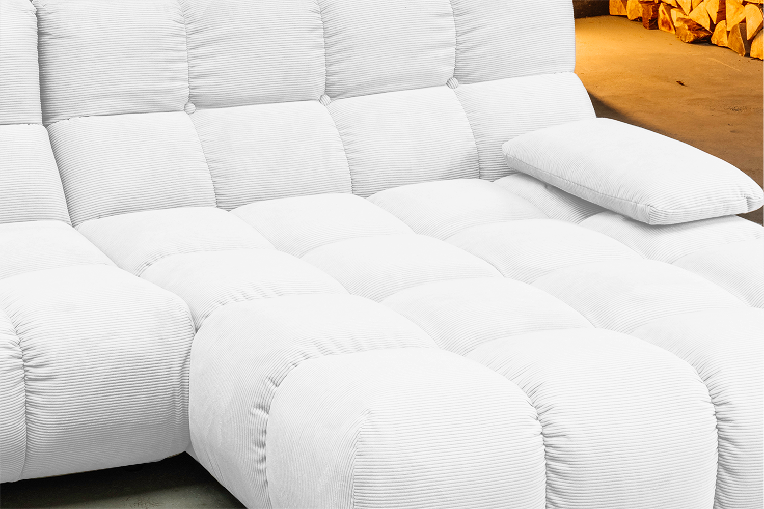 Der Bezug aus hochwertigem Feincord begeistert durch seine weiche Haptik und verleiht dem Sofa eine wohnliche, trendige Optik. Feincord ist strapazierfähig und pflegeleicht, sodass Sie lange Freude an Ihrem Ecksofa haben.