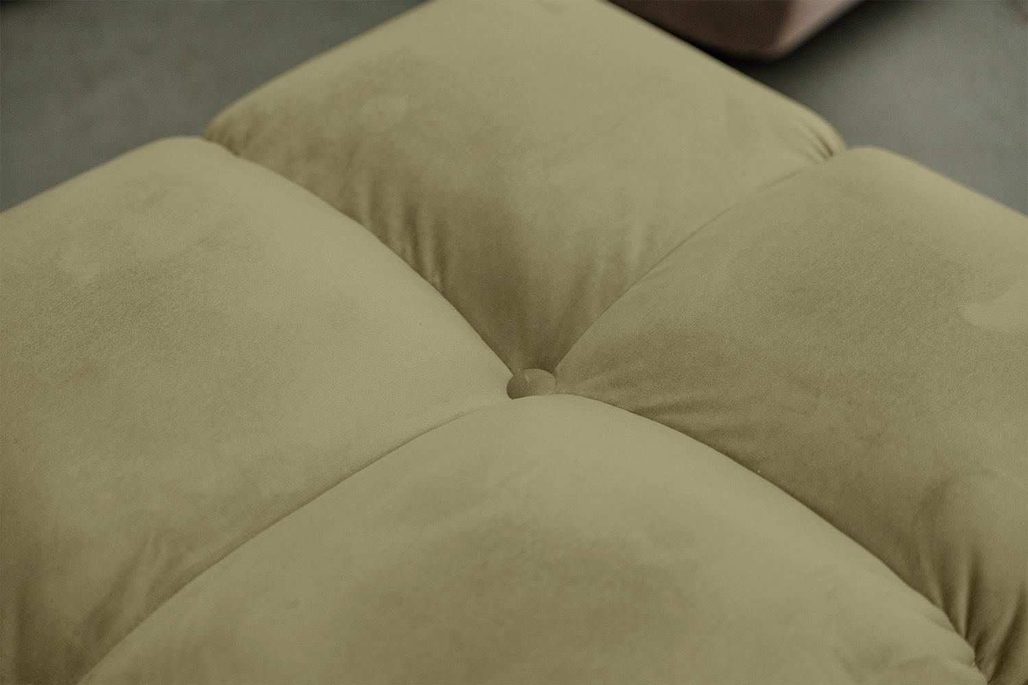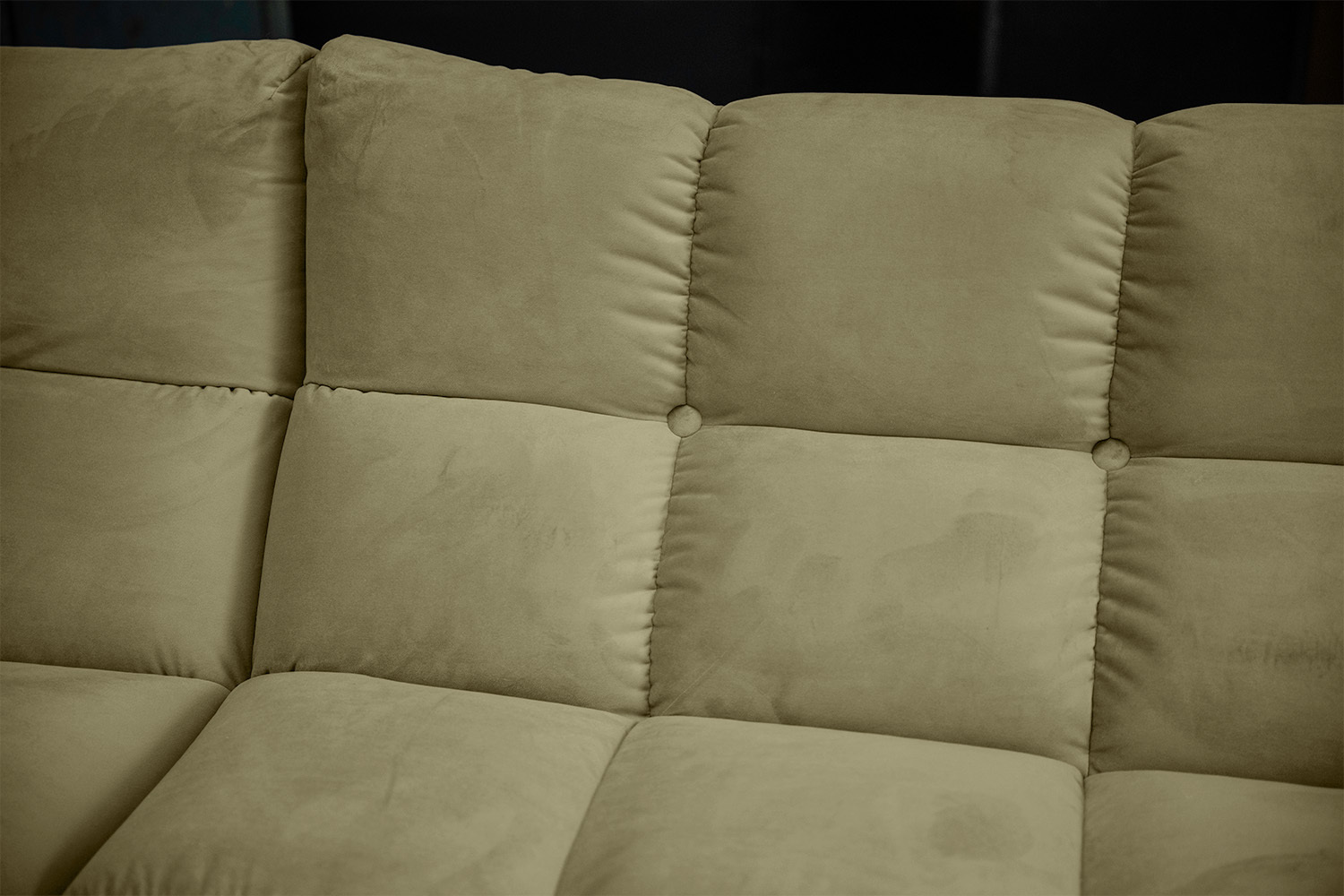 Der edle Velvet-Bezug sorgt für eine elegante Ausstrahlung und begeistert mit seiner samtweichen Oberfläche. Durch den feinen Glanz wirkt das Ecksofa besonders hochwertig und setzt stilvolle Akzente im Raum.