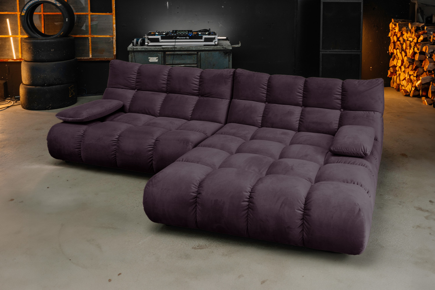 Der edle Velvet-Bezug sorgt für eine elegante Ausstrahlung und begeistert mit seiner samtweichen Oberfläche. Durch den feinen Glanz wirkt das Ecksofa besonders hochwertig und setzt stilvolle Akzente im Raum.