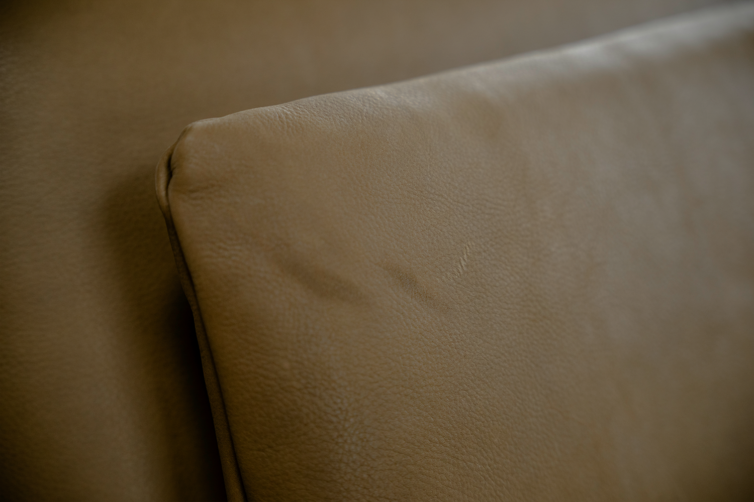 Das hochwertige, offenporige Rindsleder überzeugt durch seine natürliche Ausstrahlung. Da es nur minimal behandelt wird, bleibt die authentische Oberfläche vollständig erhalten – mit all ihren feinen Narben, leichten Falten und individuellen Strukturen. Diese Merkmale sind keine Mängel, sondern Ausdruck der Echtheit und verleihen jedem Bezug seinen ganz eigenen Charakter.