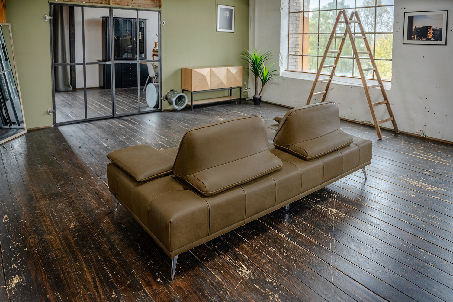 Elegante Absteppungen in der Sitzfläche, hochwertiger Lederbezug und filigrane Füße aus Metall, das alles zeichnet das Sofa WIOLO von KAWOLA aus. Doch das Möbelstück ist nicht nur optisch reizvoll! Denn das Schlafsofa WIOLO bietet verschiedene Nutzungsoptionen: Zum einen kann es als elegantes 2,5-Sitzer Sofa genutzt werden. Der Clou hierbei ist: Die Rückenkissen können nach Wunsch individuell verteilt und verschoben werden. So können Sie die für Sie komfortabelste Sitz- beziehungsweise Liegeposition einnehmen. Zum anderen kann das Sofa durch das Entfernen der Rückenpolster auch als Schlafsofa genutzt werden. Egal wo, egal wie, das Schlafsofa WIOLO verleiht jedem Raum Eleganz und Komfort.
