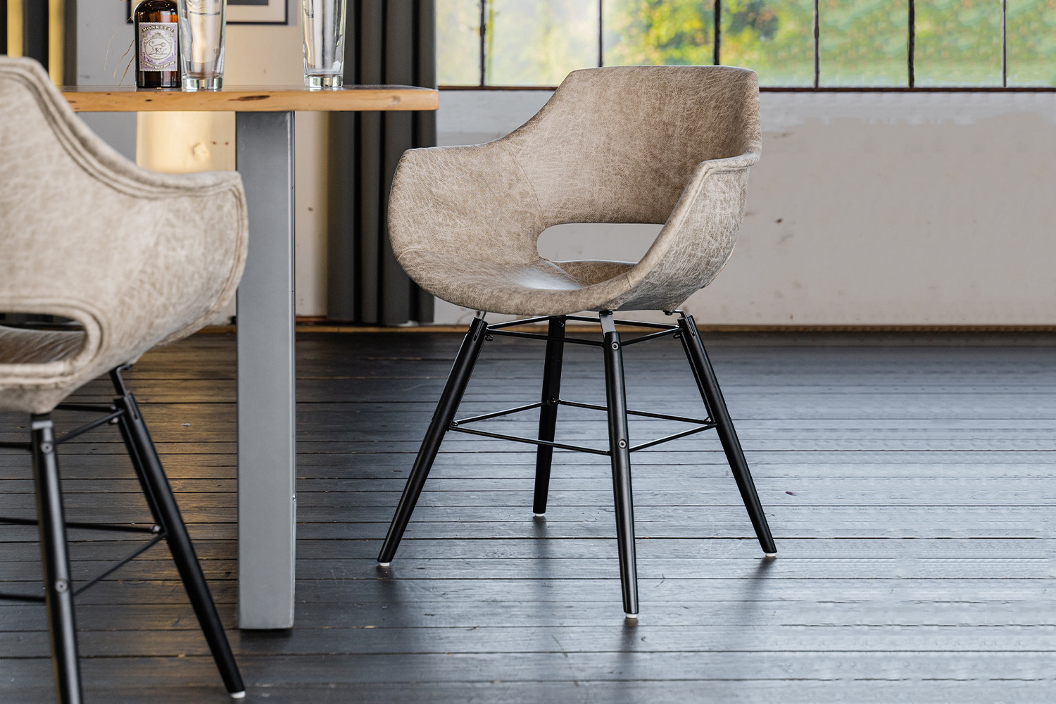 Der Stuhl ZAJA vereint industrielles und modernes Wohndesign. Hier können Sie sich bequem zurücklehnen und stilvoll speisen. Das Material ist sehr hochwertig verarbeitet und lässt sich problemlos reinigen. Der Stuhl ZAJA eignet sich für praktisch jeden Wohnbereich. Ob nun am Schreibtisch oder im Esszimmer überall macht der Stuhl aufgrund seines modernen Designs eine hervorragende Figur. Die Stuhlbeine sind aus schwarz lackiertem Holz gefertigt und runden das Industrie-Design perfekt ab. Hier steht gemütlichen Stunden zum Arbeiten oder für die Freizeit nichts mehr im Wege.Produktdetails