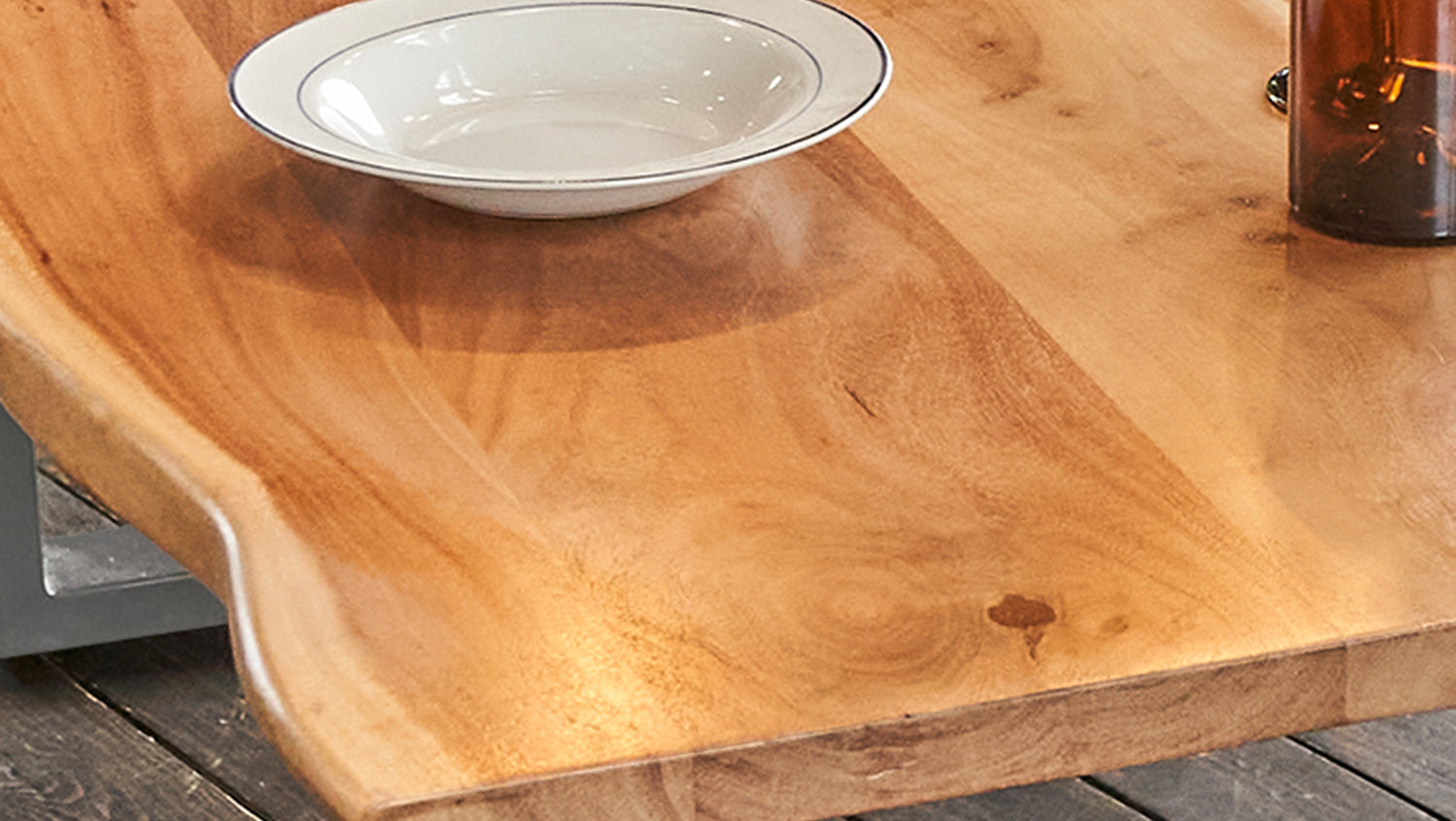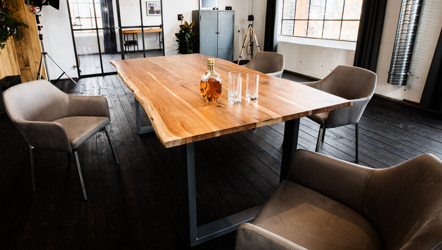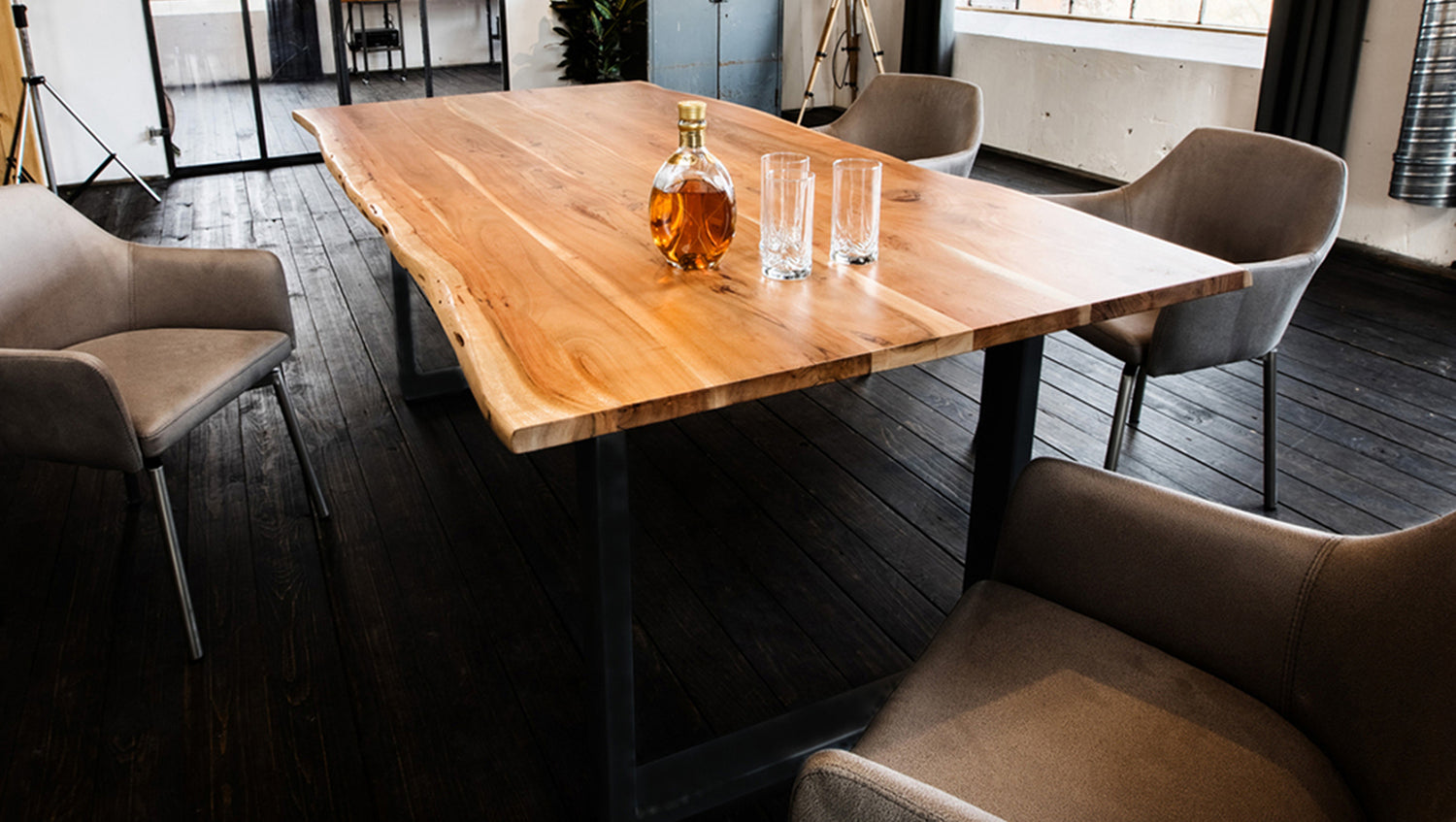 Wunderschöner Esstisch, mit Massivholzplatte, der sich wunderbar in das moderne, aber auch das rustikal gemütliche Wohnambiente integrieren lässt. Besonderes Highlight des Esstisches sind die Tischkanten, die den natürlichen Formen eines Baumes entsprechen. Das kubische Metallgestell bildet hierzu einen gelungenen Kontrast, der dem Massivholz Esstisch einen Hauch industriellen Charme verleiht. WICHTIGER HINWEIS Bei diesem Baumkantentisch handelt es sich um ein Naturprodukt. Das macht ihn zu einem Unikat, jeder Tisch ist einzigartig. Maßabweichungen, Astlöcher und Risse sowie kleinere Unebenheiten sind warentypisch und kein Reklamationsgrund. Vorhandene Risse werden noch in der Herstellung mit Stücken der gleichen Holzart ausgefüllt. Daraus resultierende farbliche Abweichungen stellen ebenfalls keinen Reklamationsgrund dar.