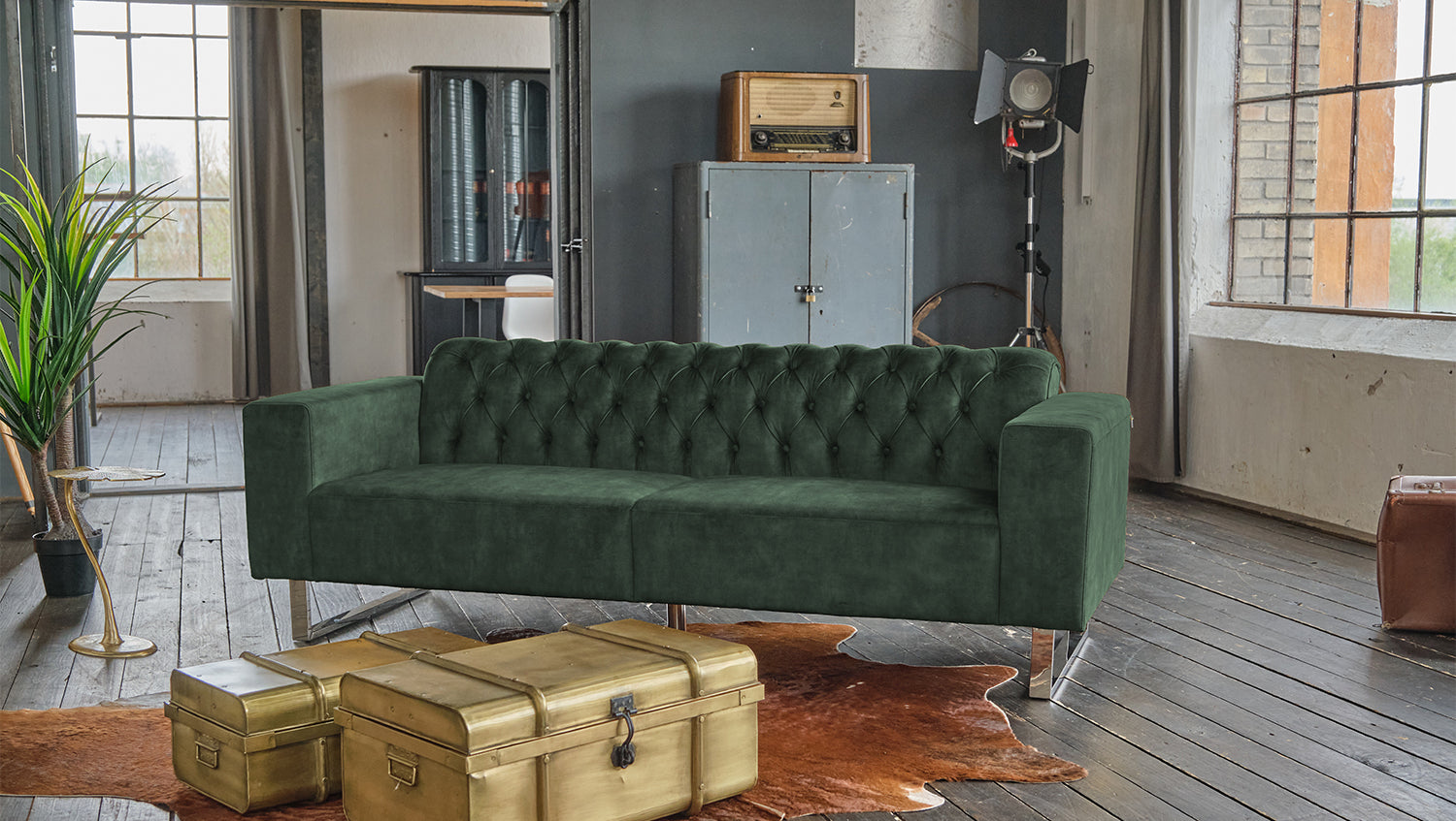 Das Sofa NILO von KAWOLA ist ein stylisches Sofa mit Samtbezug in der Ausführung Velvet Vintage Moosgrün. Das Sofa für Designliebhaber bietet Platz für bis zu drei Personen und ist dank der Polsterung aus Federkern und Schaumstoff besonders gemütlich. Die aufwendig gesteppte Rückenlehne und das hochwertig verarbeitete Samt machen das Sofa zu einem absoluten Eye-Catcher.
