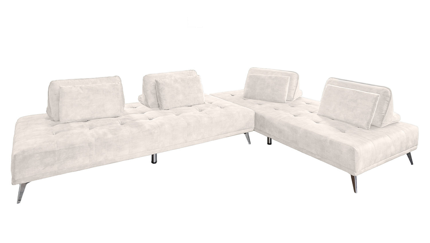 Elegante Absteppungen in der Sitzfläche, angenehmer Stoffbezug und filigrane Füße aus Metall - das alles zeichnet das Sofa WIOLO von KAWOLA aus. Doch das Möbelstück ist nicht nur optisch reizvoll! Denn das Ecksofa WIOLO bietet verschiedene Nutzungsoptionen: Zum einen kann es als elegantes Ecksofa genutzt werden. Der Clou hierbei ist: Die Rückenkissen können nach Wunsch individuell verteilt und verschoben werden. So können Sie die für Sie komfortabelste Sitz- beziehungsweise Liegeposition einnehmen. Zum anderen kann das Sofa durch das Entfernen der Rückenpolster und das Zusammenschieben der Module auch als großes (L/B: 240x220cm) Schlafsofa oder, getrennt, als zwei kleinere (L/B: 240x110cm) Liegeflächen genutzt werden.
